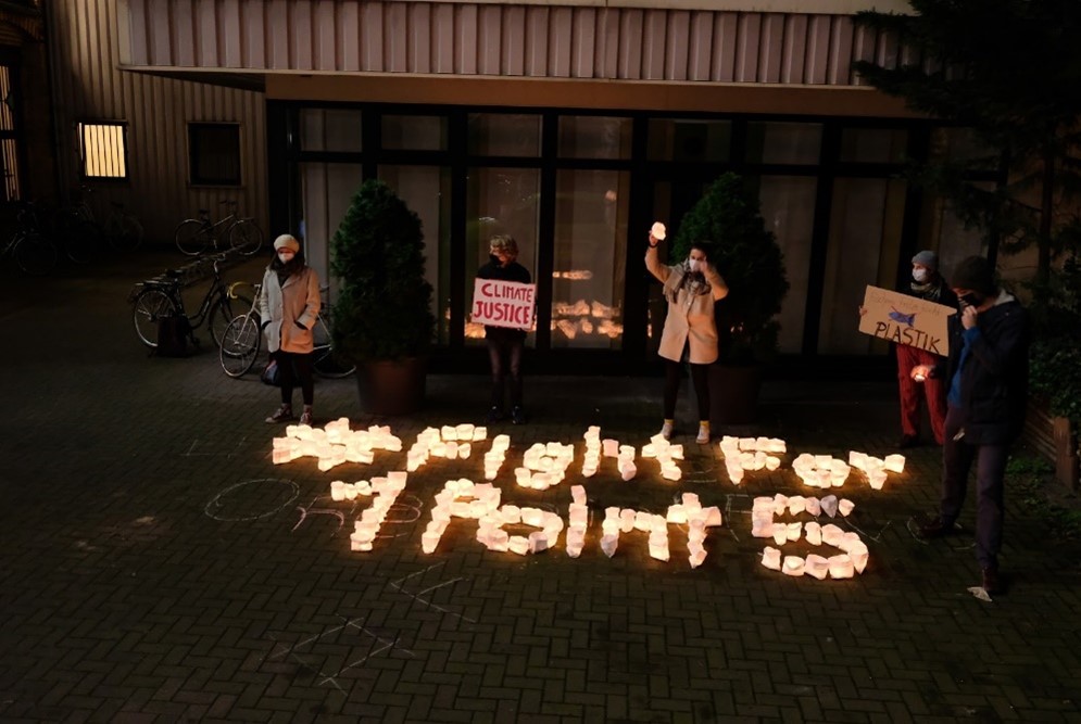 Dans le respect des consignes sanitaires, retrouvez-vous dans un endroit public (lycée, parvis d’une mairie, place ou rue commerçante, place publique…) et faites briller ensemble un message fort pour le climat en rappelant aux États l’objectif de ne pas dépasser les 1.5˚C (voir la liste des messages dont vous pouvez vous inspirer) !