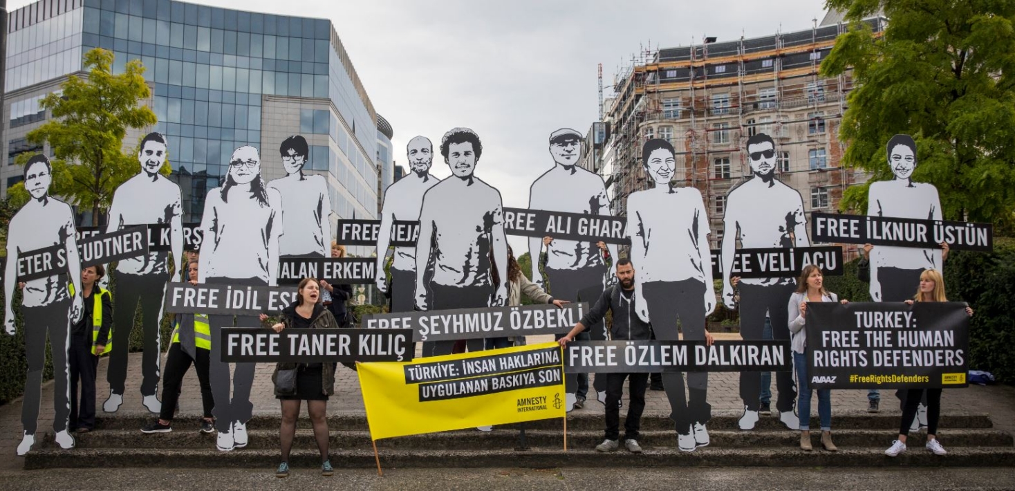 Ce dimanche 9 octobre, le Parquet d’Istanbul a établi un acte d’accusation grossier à l’encontre de 11 défenseurs des droits humains, dont Idil Eser et Taner Kiliç, directrice et président respectivement d’Amnesty Turquie. Accusés de faire partie ou de soutenir une ou plusieurs organisations terroristes, ces défenseurs risquent jusqu’à 15 ans de prison si ces accusations sont retenues par la Cour.