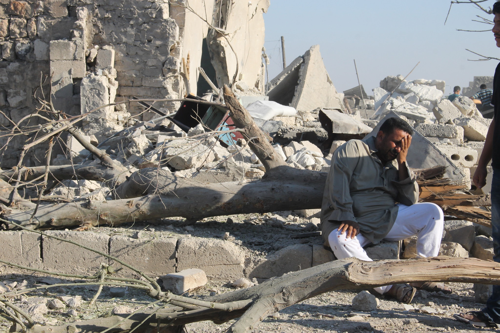 Illustration de destruction par les bombes-barils © Amnesty International (Photo: Mujahid Abu al-Joud)