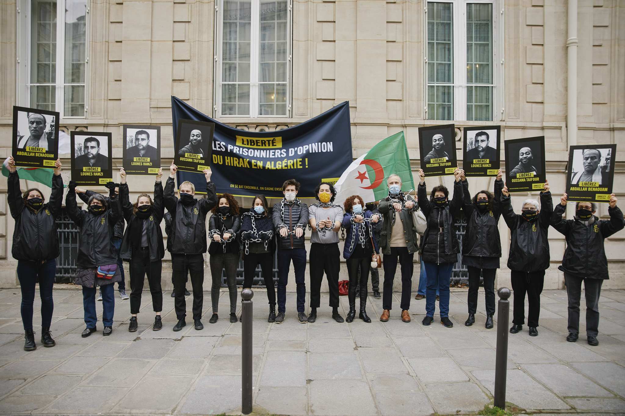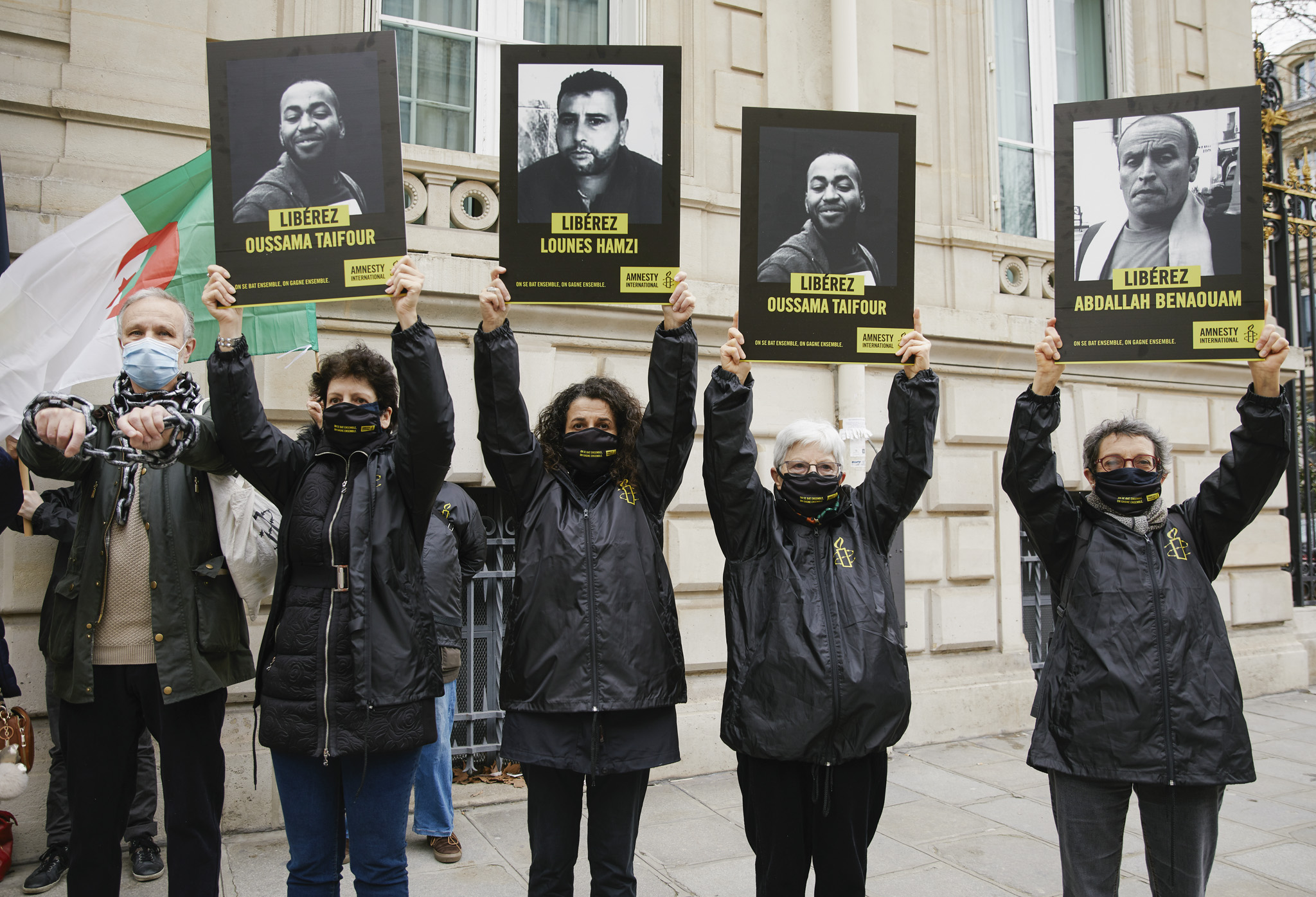 Le 22 février 2021, nous étions devant l’ambassade d’Algérie à Paris pour remettre notre pétition, que vous aviez été 42 595 à signer, qui demandait la libération de tous les prisonniers d’opinion algériens. D’une seule voix, nous avons scandé : « Liberté ! ». Un immense merci ! Il est important de maintenir la pression sur les autorités algériennes.