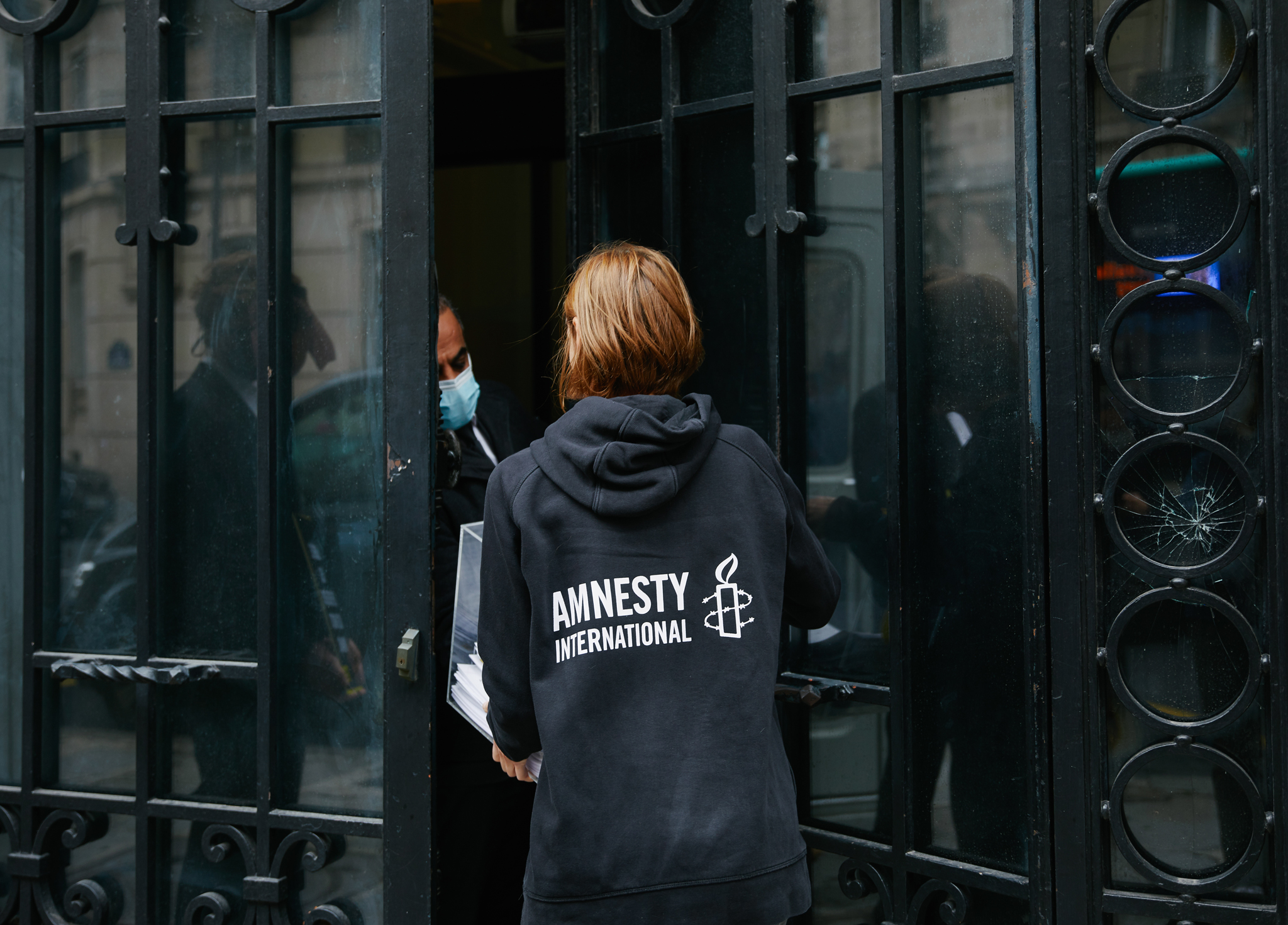 Remise de la pétition à l’ambassade d’Arabie saoudite, octobre 2020 © Christophe Meireis / Amnesty International