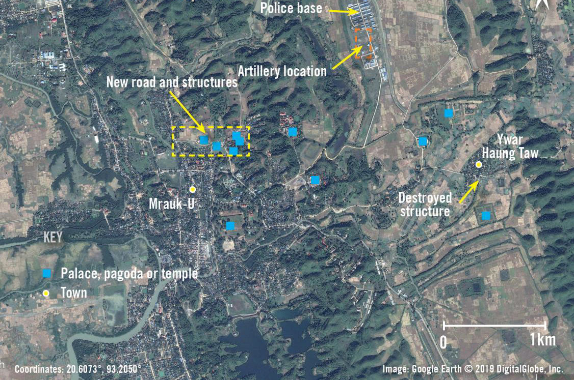 Les images satellite confirment la présence d’artillerie près des temples et des photos montrent des dégâts sur le site. Nous n’avons pas pu déterminer qui était responsable de ces attaques, mais l’armée du Myanmar, en se déployant près de ces monuments, a exposé des biens historiques et culturels à de possibles dégâts et destructions, en violation du droit international humanitaire.