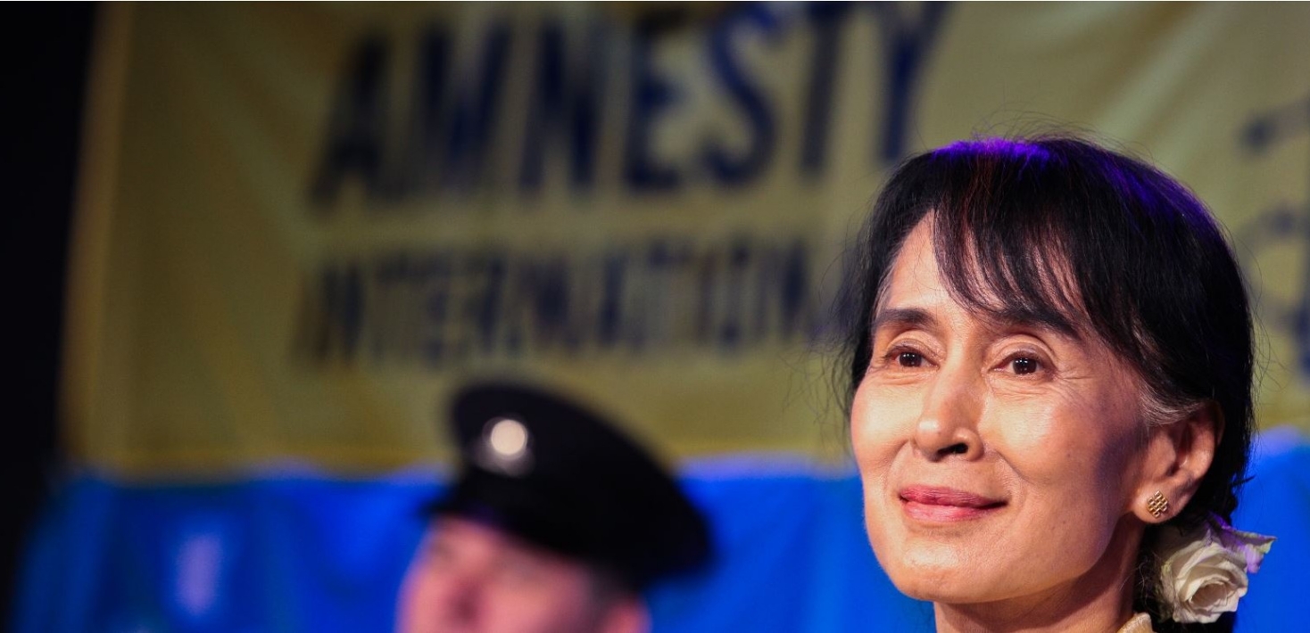 Aung San Suu Kyi, est une personnalité politique birmane, défenseure des droits humains et ancienne prisonnière d’opinion ayant passé une quinzaine d’années en résidence surveillée au Myanmar.