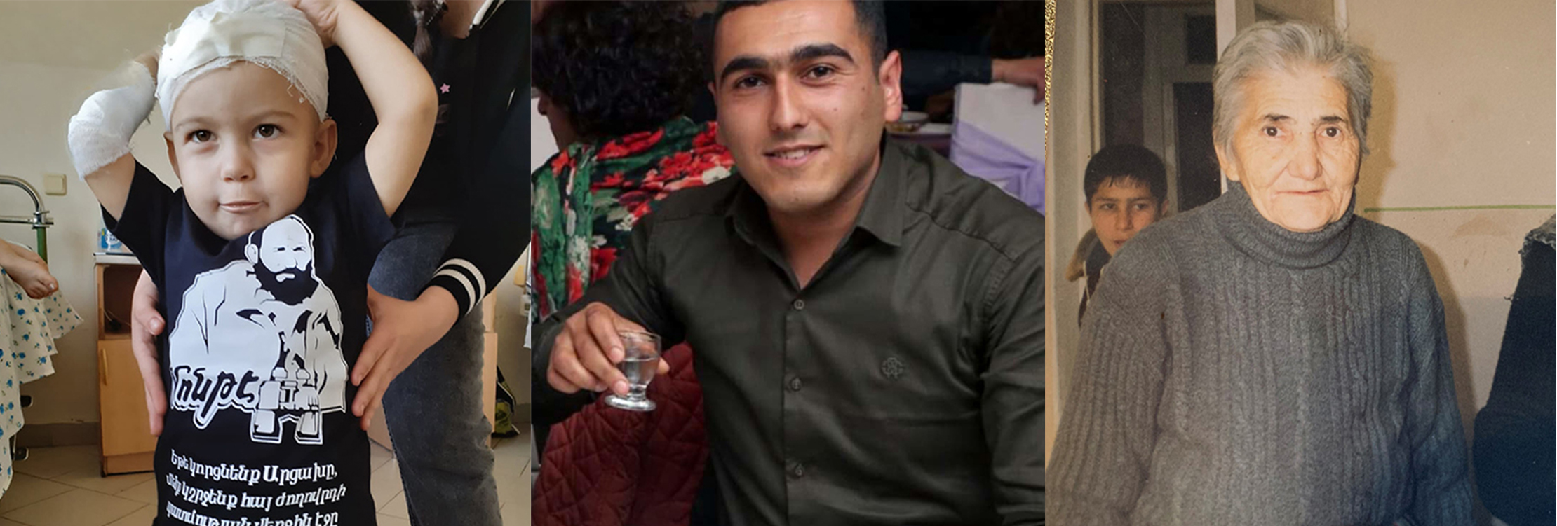 Ces trois personnes ont été tuées lors de frappes azerbaïdjanaises. De gauche à droite : Artsvik Gevorgyan, deux ans, Hovhannes Aghajanyan, un secouriste, Svetlana Mkrtchyan, 83 ans
