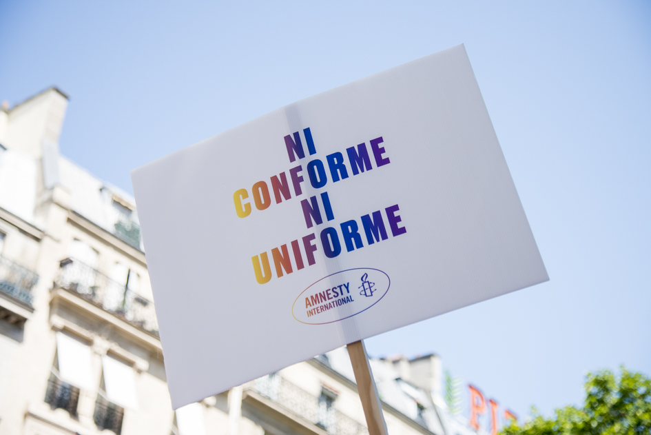 Sous le slogan « Ni conforme, ni uniforme » © Anaïd de Dieuleveult / Hans Lucas