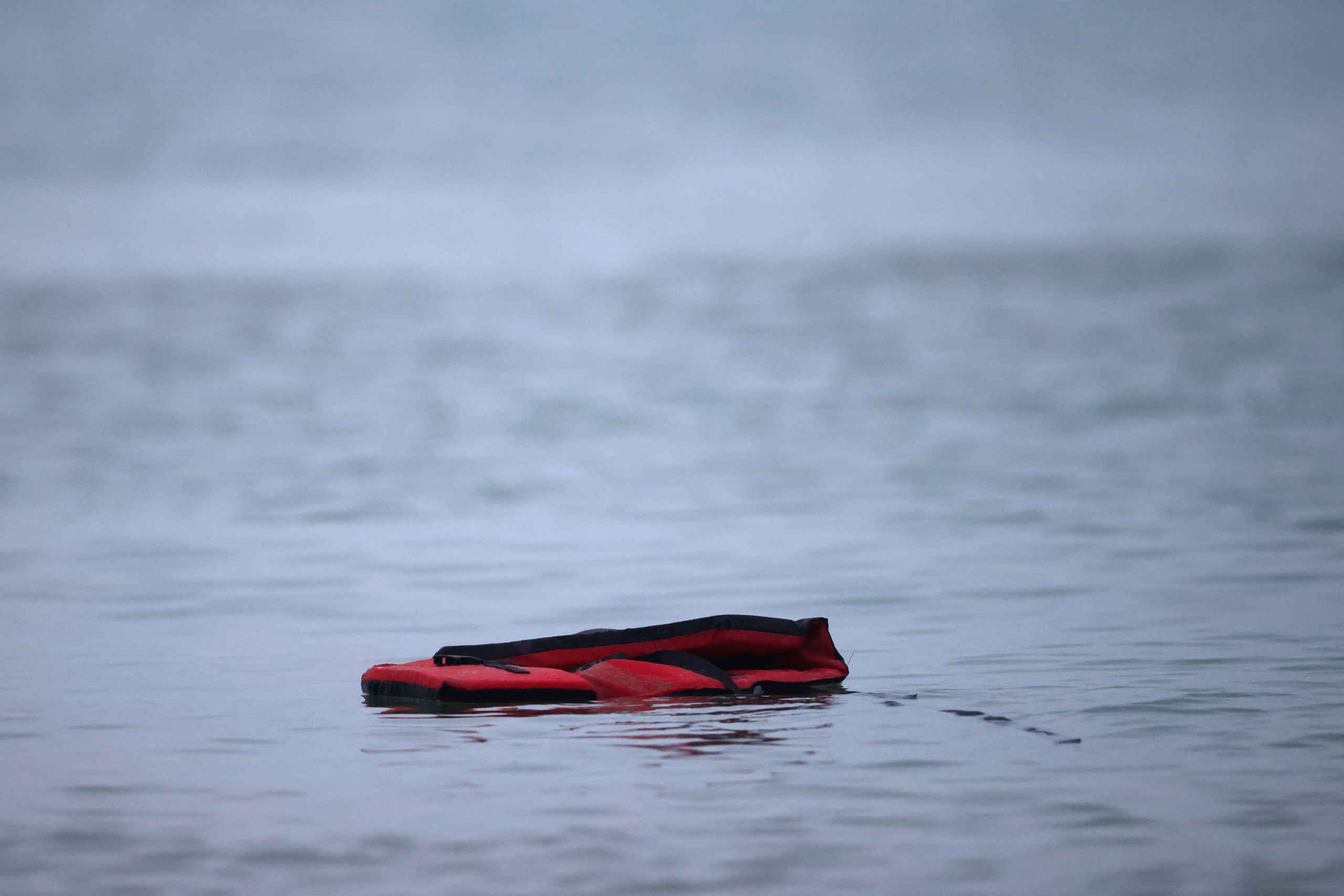 Un gilet de sauvetage apparaît après qu’un groupe de migrants est monté dans un canot pneumatique afin de quitter les côtes du nord de la France et de traverser la Manche, près de Wimereux, France. Photo prise le 24 novembre 2021/REUTERS/Gonzalo Fuentes