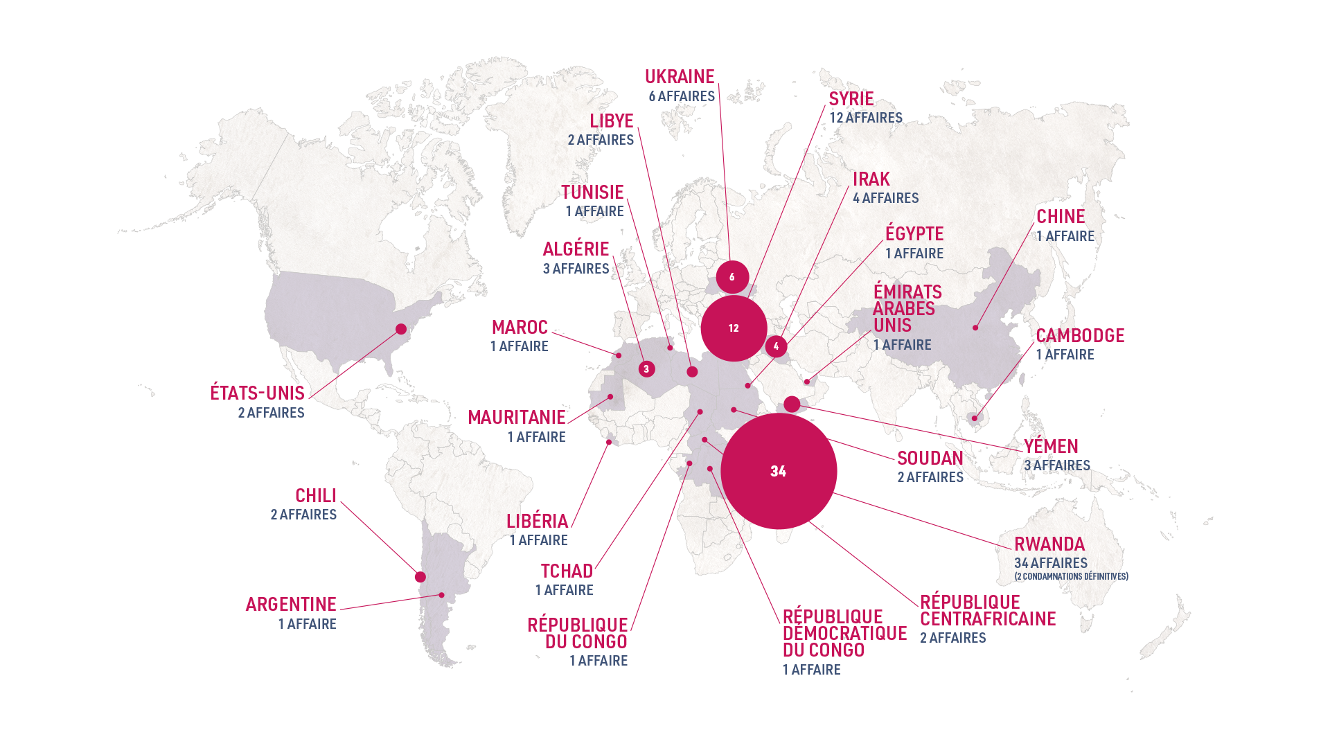 Plus de 100 affaires sont en cours devant le pôle spécialisé au tribunal judiciaire à Paris, en vertu de la compétence universelle.