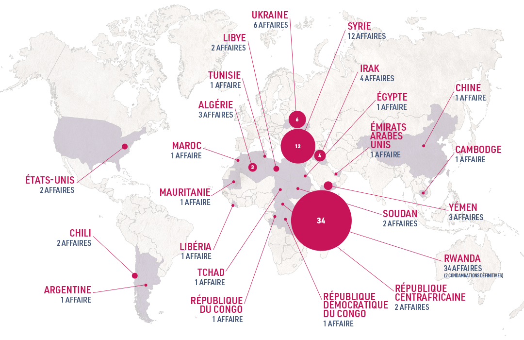 Source : Les étudiants de la Clinique juridique de l’université de Lille, sous la direction de la commission Justice d’Amnesty International France, se sont basés sur des sources ouvertes. Ces affaires sont données à titre d’exemple. © Élise Desmars-Castillo avec Jeanne Sulzer, responsable de la commission Justice d’Amnesty International France.