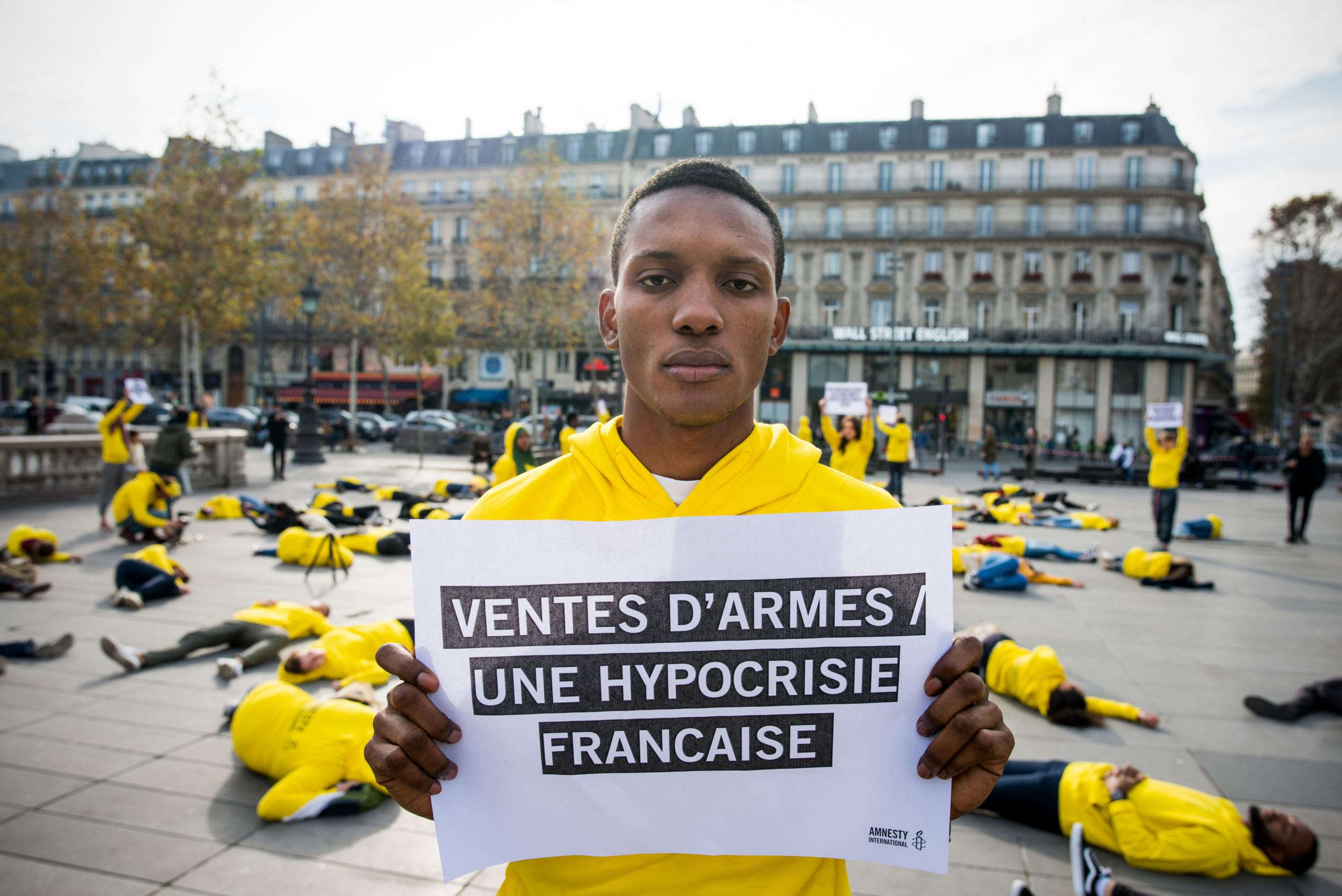 Manifestation contre les ventes d’armes françaises au Yémen, place de la République à Paris, octobre 2018 © Benjamin Girette