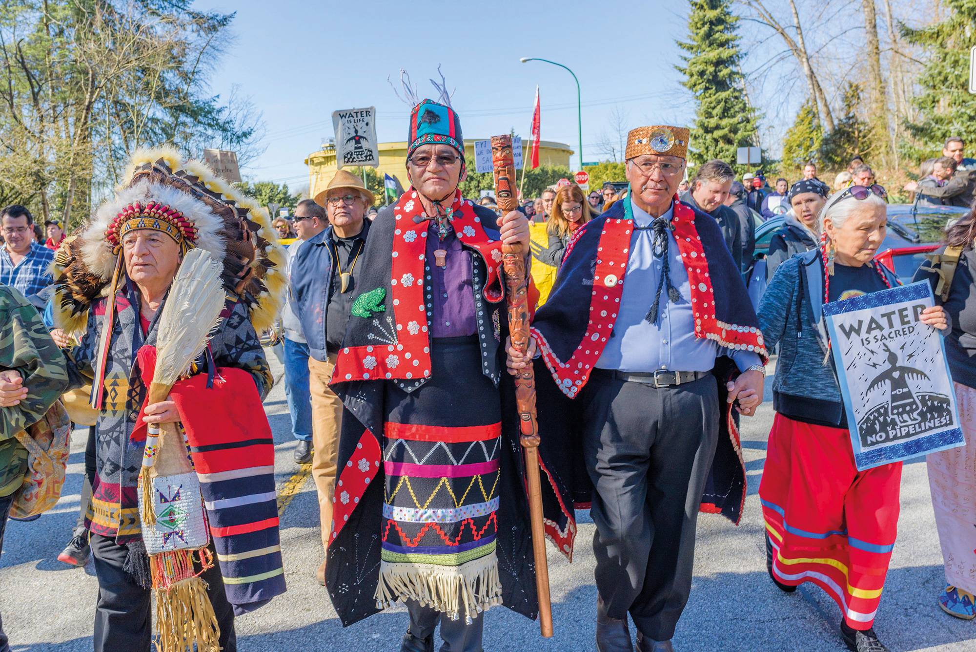 Mobilisation contre le projet de pipeline Coastal Gaslink qui menace les terres des Wet’suwet’en avec la présence de l’un des chef du peuple autochtone, Canada, Québec