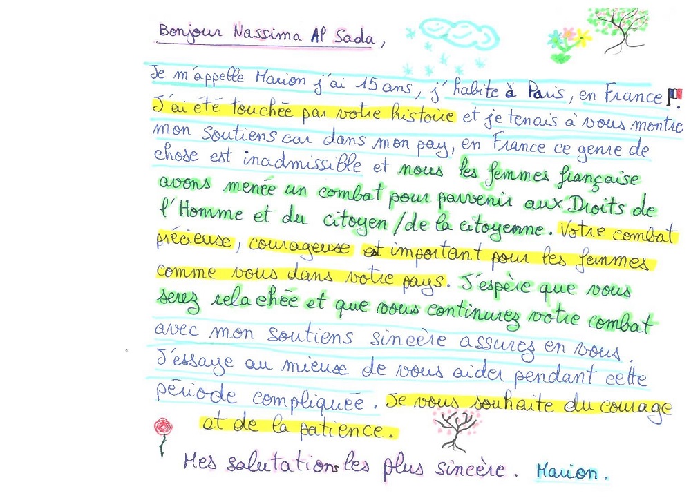 Chaque année, des messages de soutien sont envoyés au siège national, à Paris, à l’attention de chacune des personnes mises en avant par les 10 Jours Pour Signer. Après avoir récolté ces lettres, nous les envoyons au siège d’Amnesty International, à Londres, qui les transmet ensuite à chacune des personnes concernées ou bien à sa famille.
