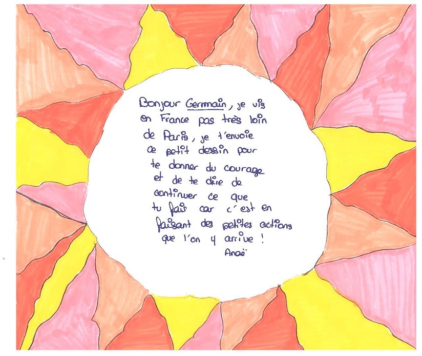 Nos militants localement font régulièrement participer des jeunes à cette action en leur proposant d’écrire des messages de soutien (lettres, petits mots personnalisés, dessins, origami, etc).