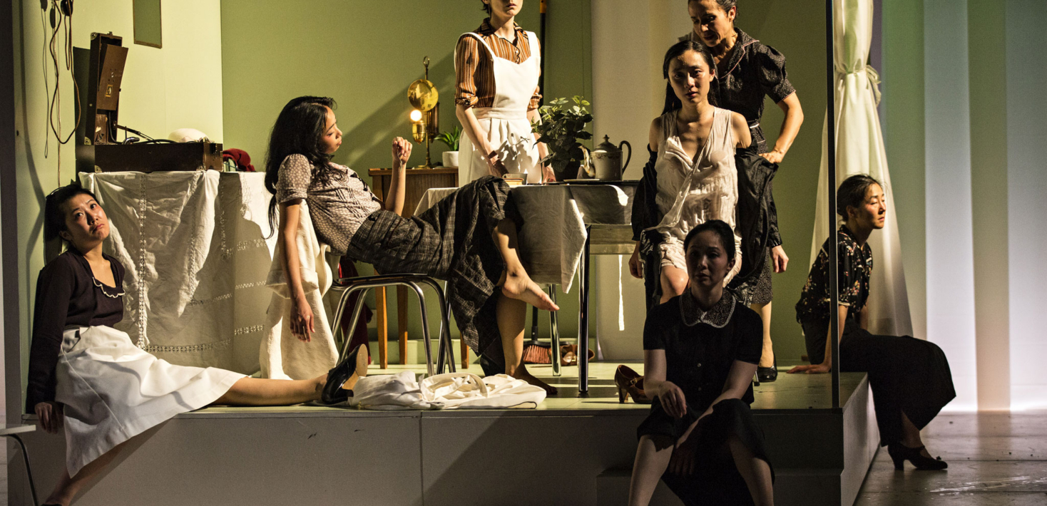 Elle m’avait confié son désir de faire du théâtre avec une troupe. Pour les sept premiers chapitres, la dramaturgie s’oriente vers le groupe des Japonaises et de leurs maris. Je montre sur scène les invisibles de l’histoire mais non les Américains que l’on ne fait que deviner.