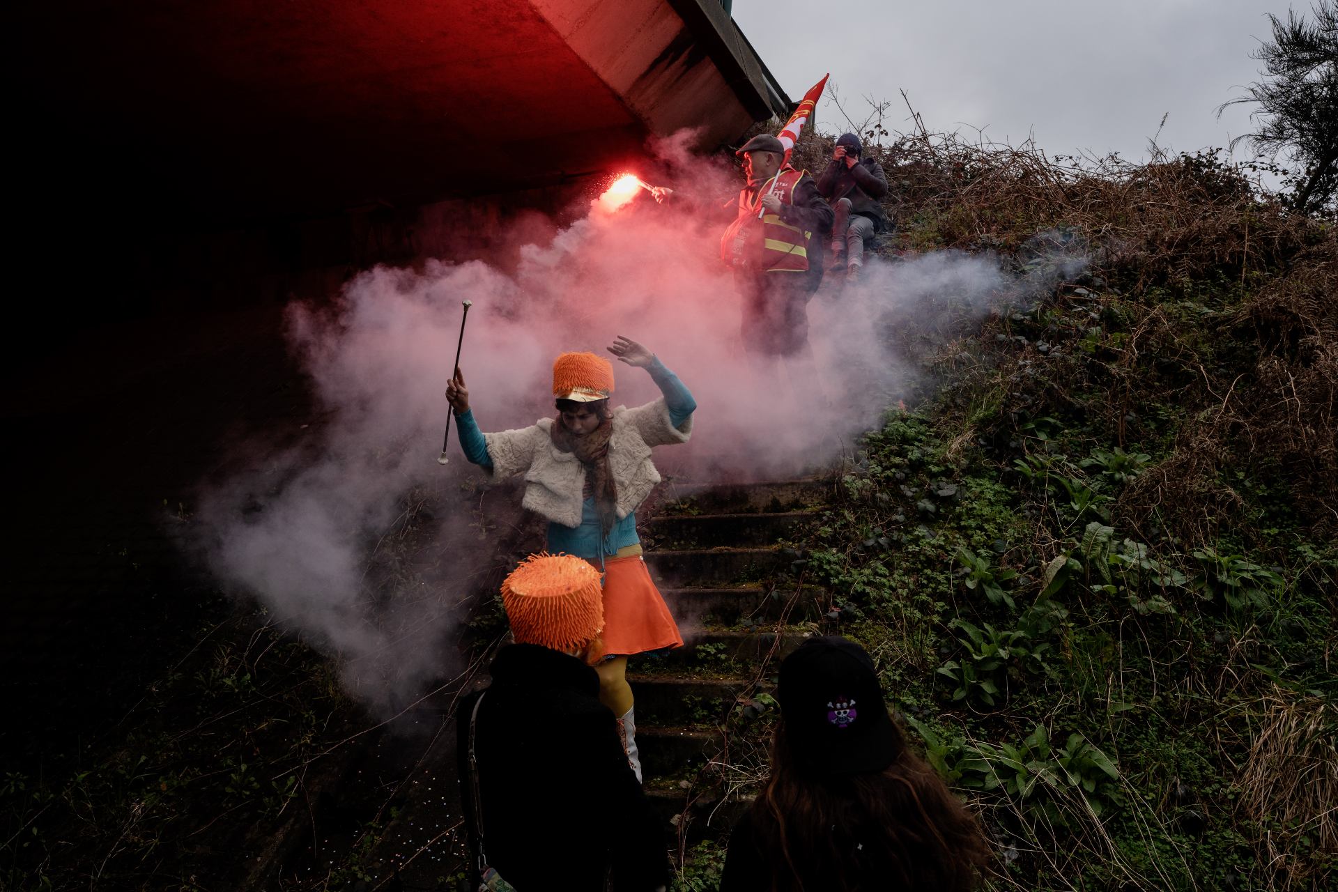 L’année 2023 a été marquée par d’importantes mobilisations en France contre la réforme des retraites. La photographe Adrienne Surprenant s’est intéressée aux manifestations à l’extérieur de Paris pour un reportage publié dans un média étranger. La ville de Morlaix, en Bretagne, a retenu son attention. Dans cette ville du Finistère il y avait le même nombre d’habitants que de manifestants, à savoir, 15 000 personnes.