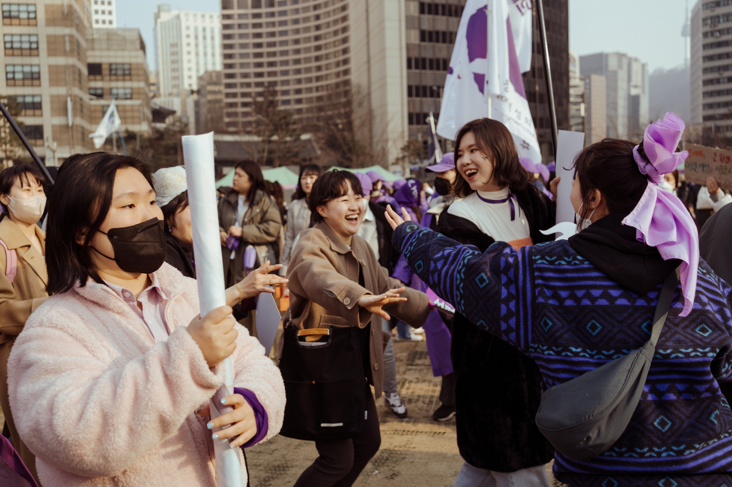 En Corée du Sud, les femmes se battent aussi pour leurs droits. La photographe Agnès Dherbeys a couvert pour la première fois en 2023 une manifestation à Séoul organisée dans le cadre de la journée internationale des droits des femmes. Elle a suivi un groupe de militantes féministes, le « Flaming Feminist Action ».