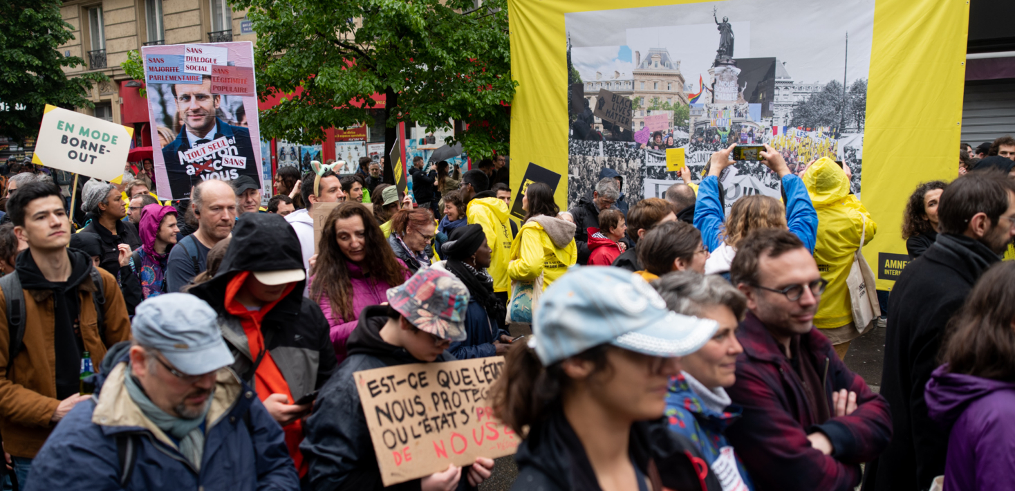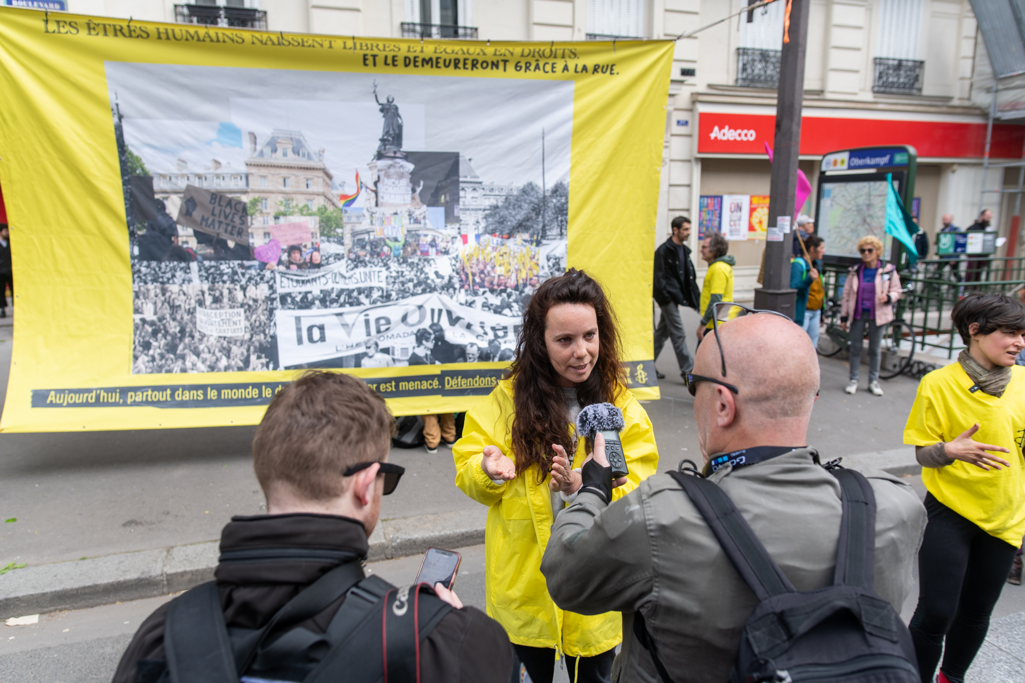 « Les êtres humains naissent libres et égaux en droit. Et le demeureront grâce à la rue », c’est le message qui était affiché sur une immense bâche que nous avons déployée sur les cortèges des marches du 1er mai. Notre visuel retraçait des manifestations historiques menées sur la Place de la République à Paris : Black Lives Matter, MeToo, Loi Climat…