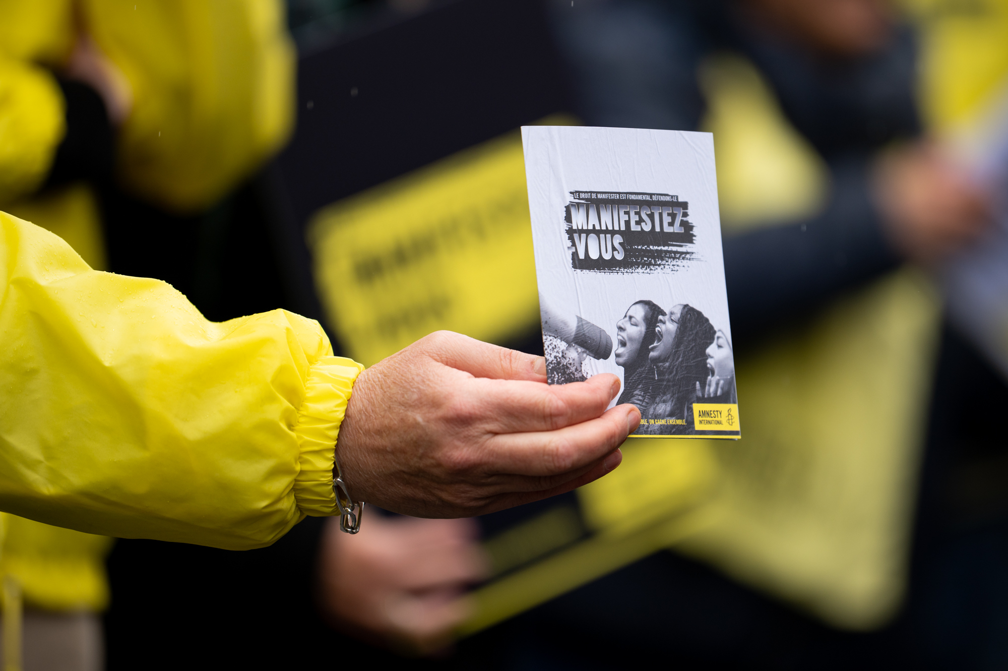Notre objectif ? Rappeler aux manifestants qui défilaient les principales victoires obtenues grâce à la mobilisation citoyenne, souligner l’importance du droit de manifester et l’urgence à le défendre face aux menaces qui pèsent sur lui. La présence de nos militants était aussi une invitation pour les manifestant.e.s à venir s’informer sur leurs droits et les actions à mener pour protéger le droit de manifester.