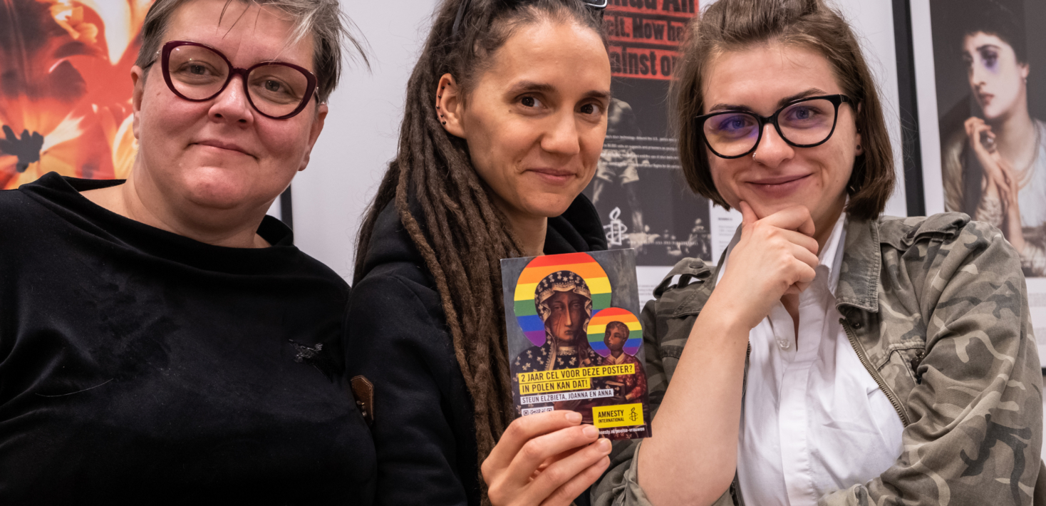 Détenir, créer ou distribuer des affiches comme celles que les 3 activistes ont produites n’est pas une infraction ; cela relève de la liberté d’expression, qui est un droit humain fondamental. C’est ce qu’ont revendiqué haut et fort les centaines de milliers de personnes qui se sont mobilisées à nos côtés pour défendre Elżbieta, Anna et Joanna. 280 000 personnes ont signé notre pétition pour exhorter le procureur général de Pologne à abandonner les charges totalement infondées retenues contre elles.