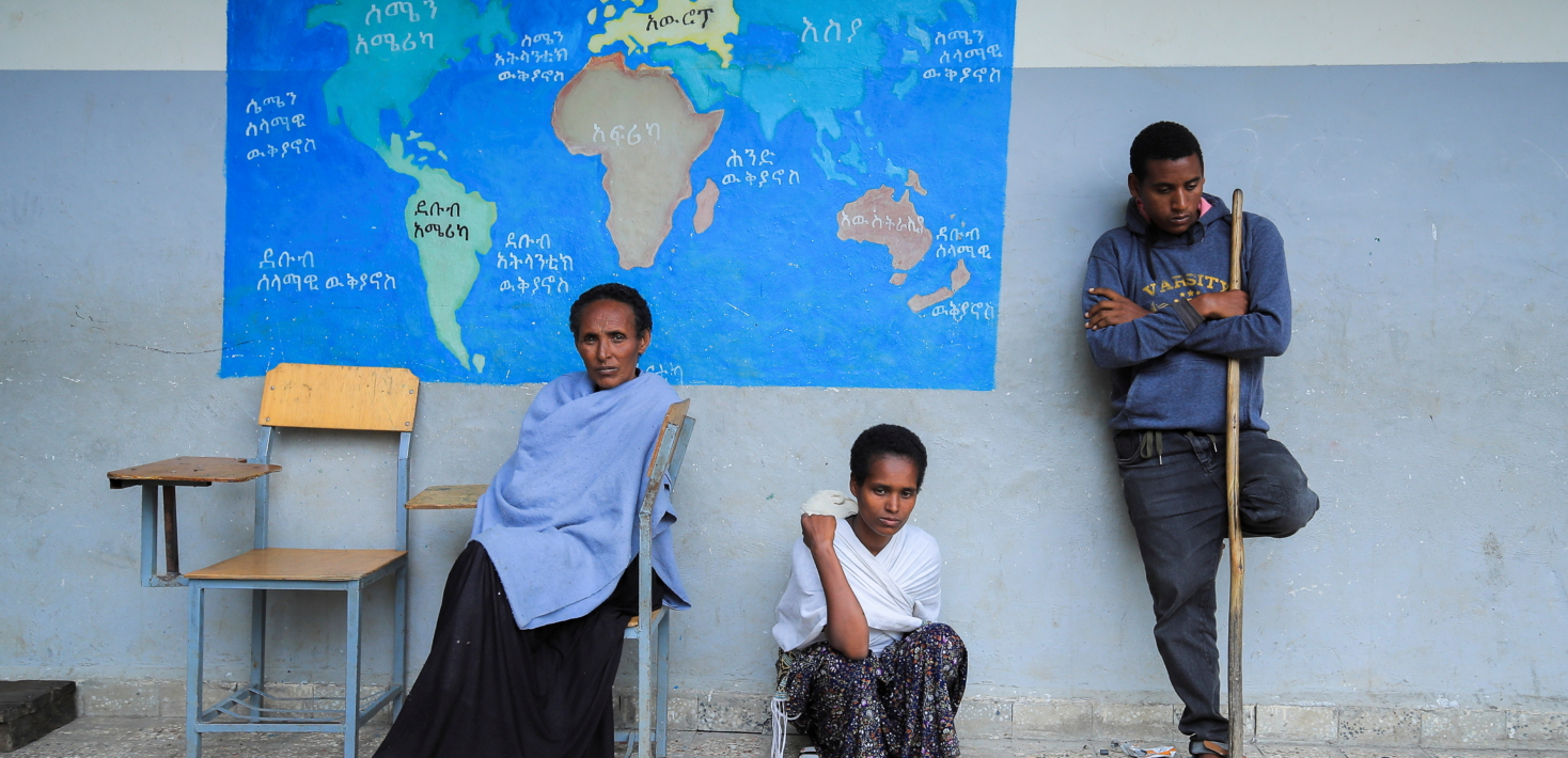 Des civils déplacés de la ville de Kobo sont vus dans un camp de fortune scolaire pour les personnes déplacées en raison des combats entre la Force de défense nationale éthiopienne (ENDF) et les forces du Front de libération du peuple du Tigré (TPLF), dans la ville de Dessie, région d'Amhara, Éthiopie, le 9 octobre 2021. Crédit : Tiksa Negeri/REUTERS.