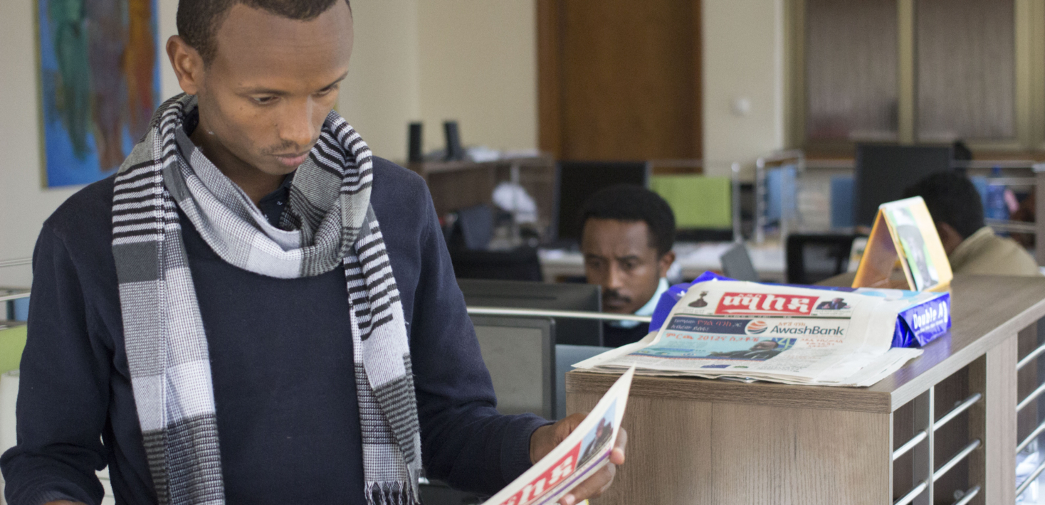 Comme chaque vendredi, la rédaction d’Addis Maleda est en pleine effervescence pour le bouclage de l’hebdomadaire. À son bureau, Befeqadu Hailu, lunettes sur le nez, relit les articles avec concentration. Jadis détenu avec ses amis blogueurs du collectif Zone 9 qu’il a cofondé en 2012, le trentenaire est maintenant le directeur exécutif adjoint du journal.
