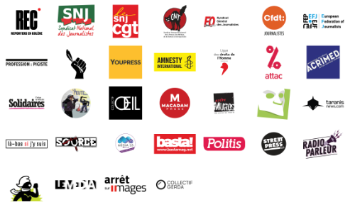 (SGJ-FO) – CFDT – Journalistes – Fédération Européenne des Journalistes (EFJ) – Profession : Pigiste – Ras-la-Plume – Collectif YouPress – Amnesty International France – LDH – ATTAC – ACRIMED – Solidaires – Collectif LaMeutePhoto – Collectif OEIL – Collectif MacadamPress – Collectif Extra Muros –