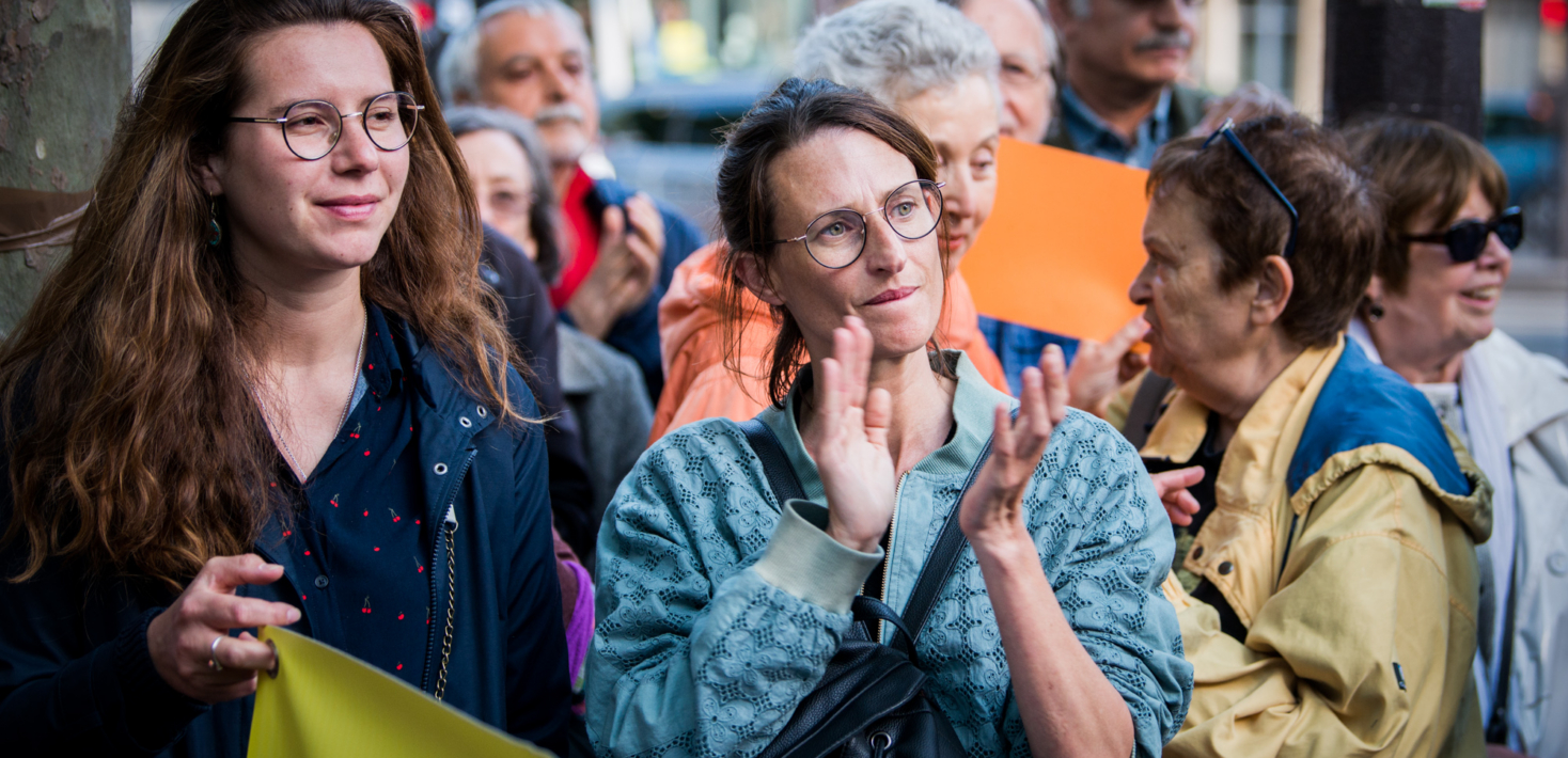 Avocats, associations, militants, Camille Cottin et plus de 150 personnes étaient à nos côtés. Merci aux associations d’avoir relayé notre appel auprès de leurs réseaux.