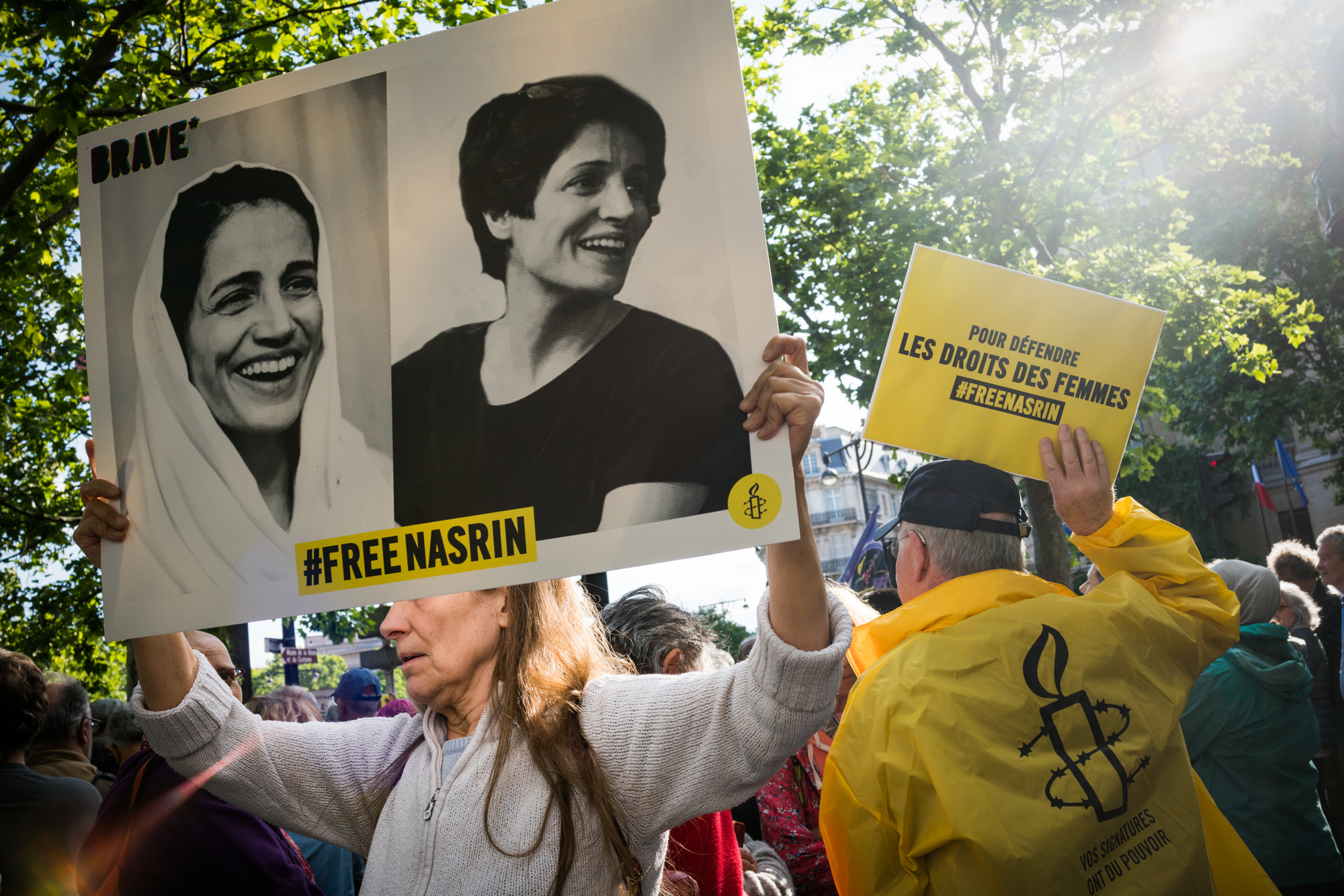 Hier, nous étions devant l’ambassade d’Iran pour exiger la libération de Nasrin Sotoudeh, éminente avocate iranienne et défenseure des droits des femmes, emprisonnée depuis un an. Retour en images.