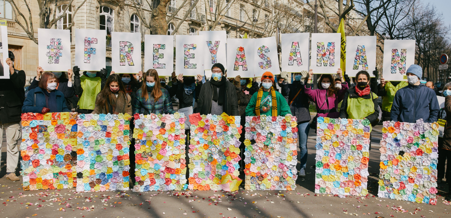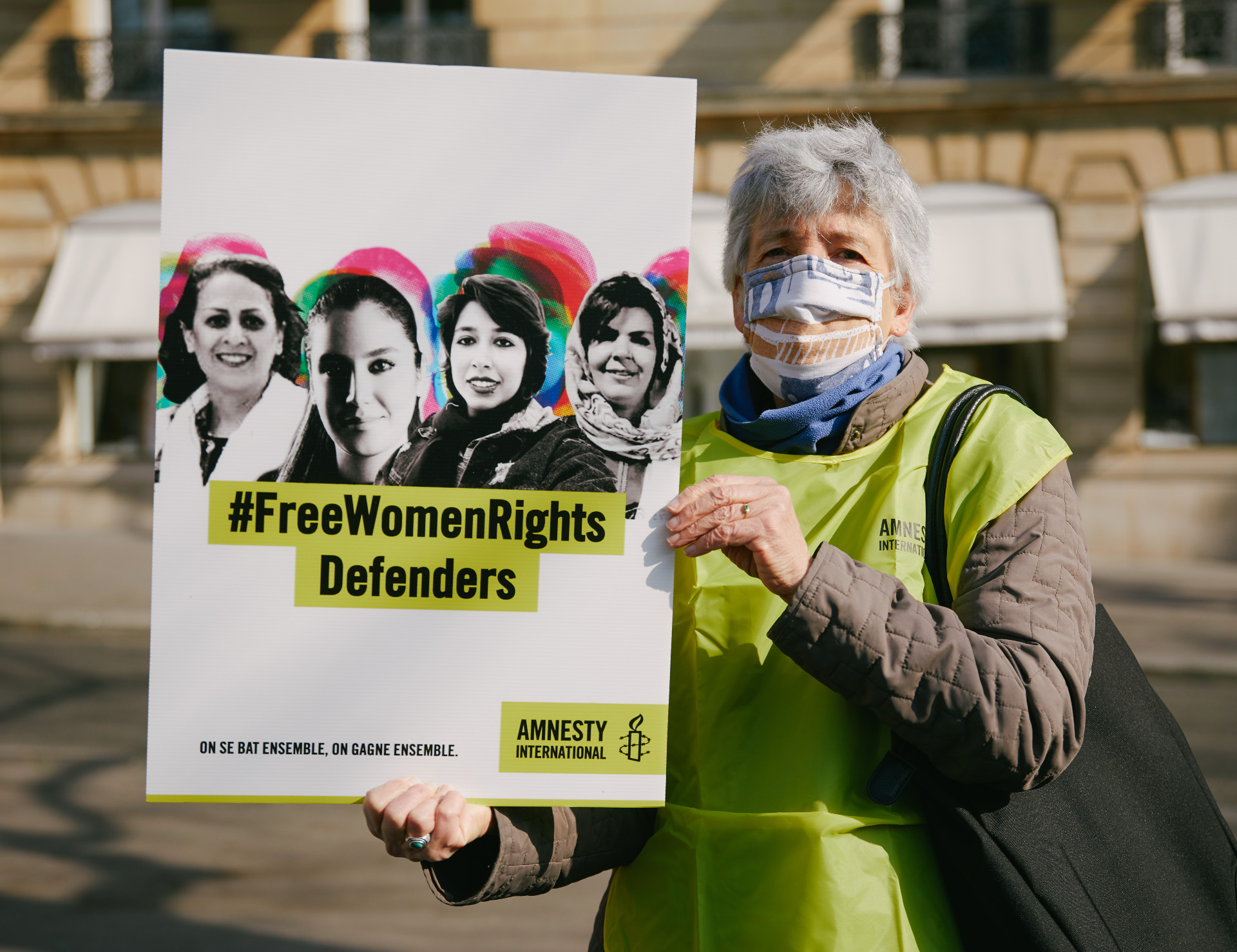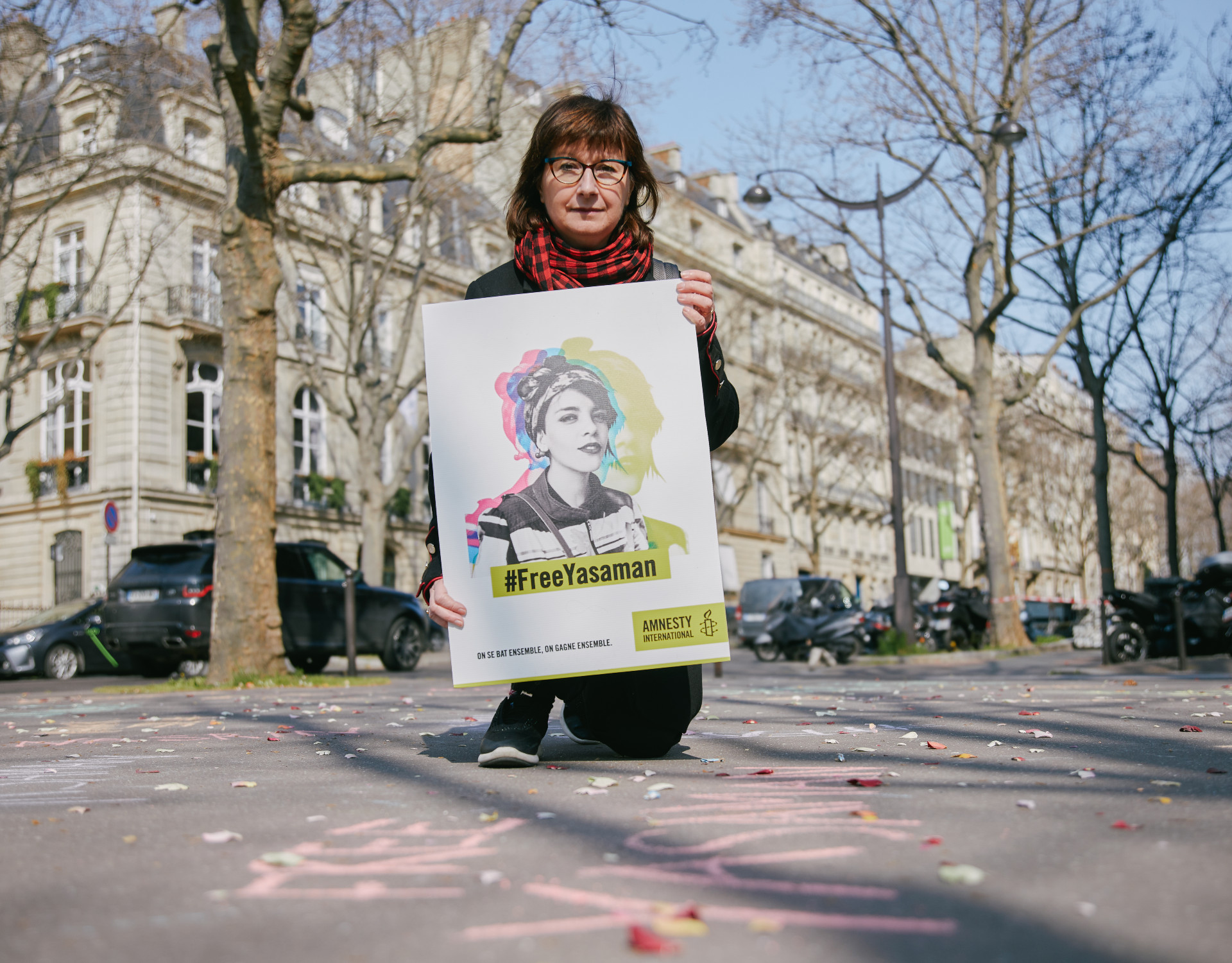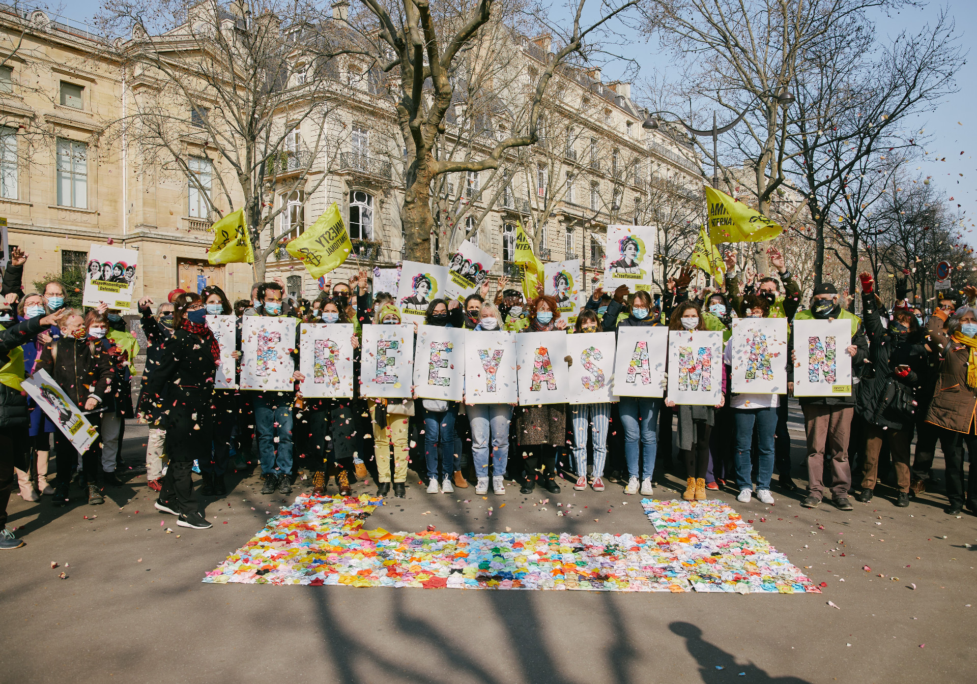 Le 8 mars 2021, à l’occasion de la Journée internationale des droits des femmes, nous étions à proximité de l’ambassade d’Iran pour demander la libération de Yasaman et des militantes des droits des femmes emprisonnées dans le pays.