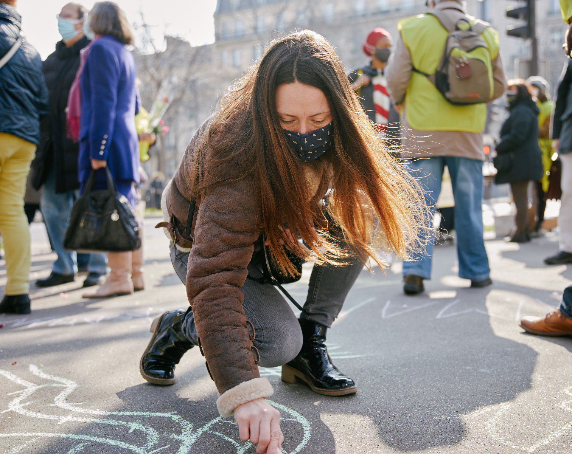 Partout en France, nos militants se sont réunis le 8 mars 2021, en soutien à ces femmes et à leur combat. En écho à leur geste pacifique, des milliers de fleurs en origami ont été fabriquées. Elles seront envoyées prochainement à l’ambassade d’Iran.