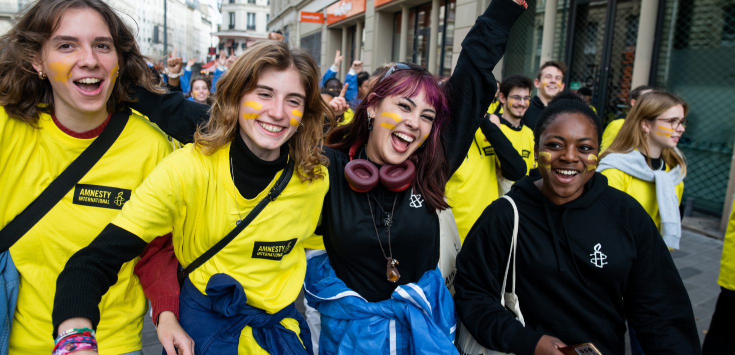 Chaque année en France, plus des milliers de jeunes militant.es issus de nos 200 antennes jeunes, se mobilisent dans les universités et les lycées. Sur leurs lieux d’études, dans l’espace public, en ligne, par courrier, ces jeunes âgés de 16 à 25 ans, sont sur tous les fronts. Lorna, 18 ans, avait 12 ans quand elle a rejoint le mouvement : « J’ai rejoint Amnesty International pour me battre dans le concret. On se bat pour la vie de quelqu’un à l’autre bout du monde, mais cette personne est en réalité plus proche de nous qu’on pourrait le penser. Ça prouve qu’avec des actions concrètes on obtient des résultats. Le slogan ‘on se bat ensemble, on gagne ensemble’ : c’est clairement ce qui me pousse à militer ici ! »