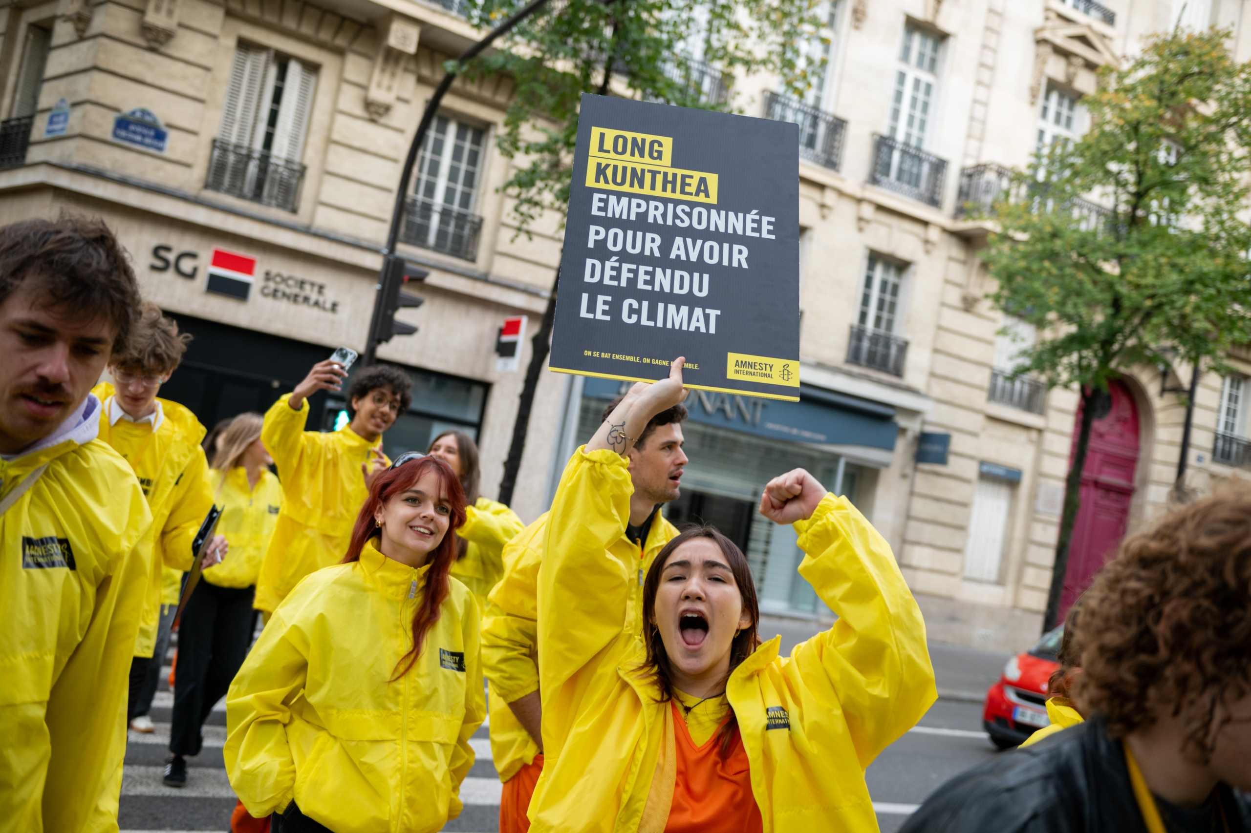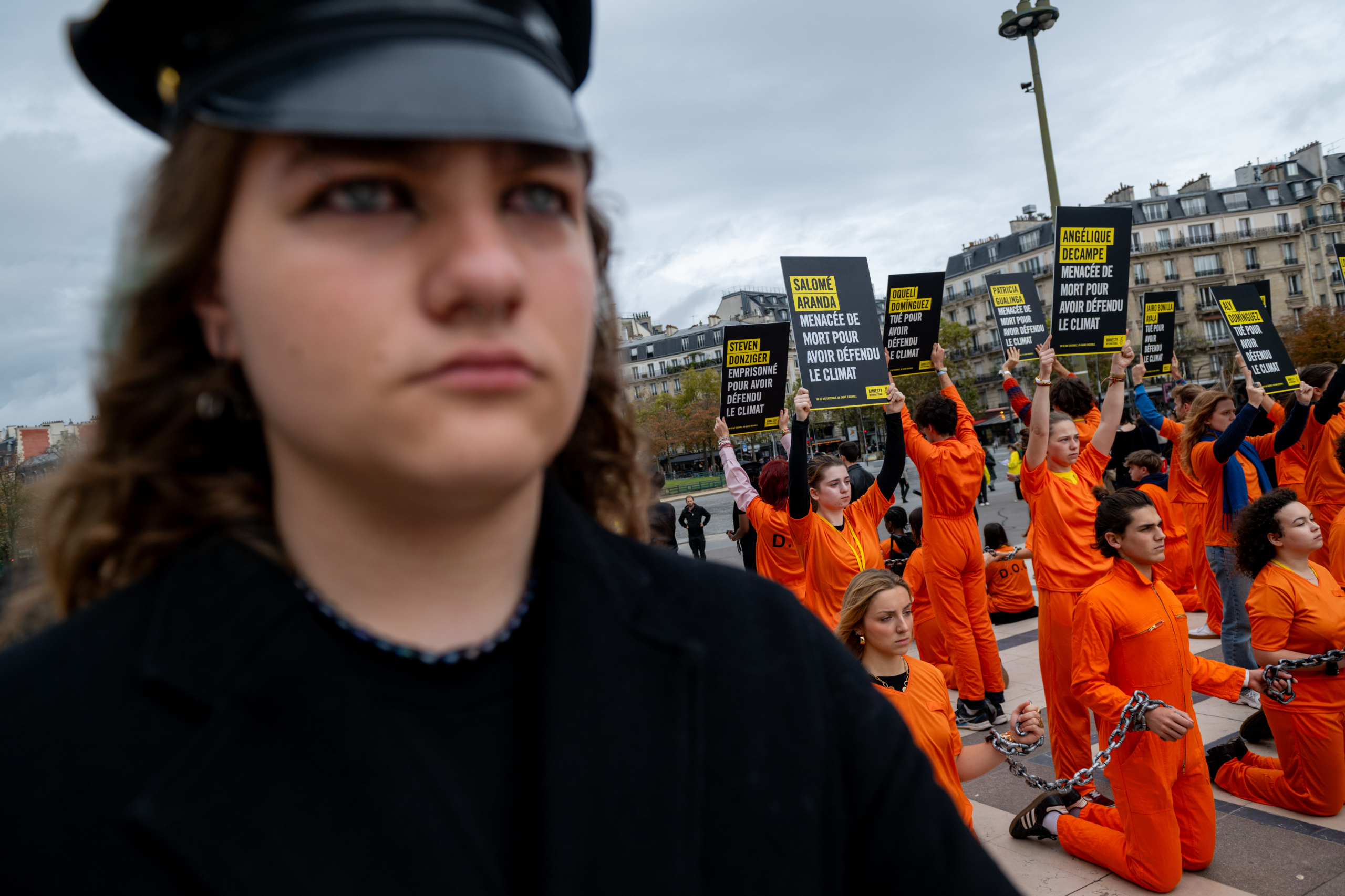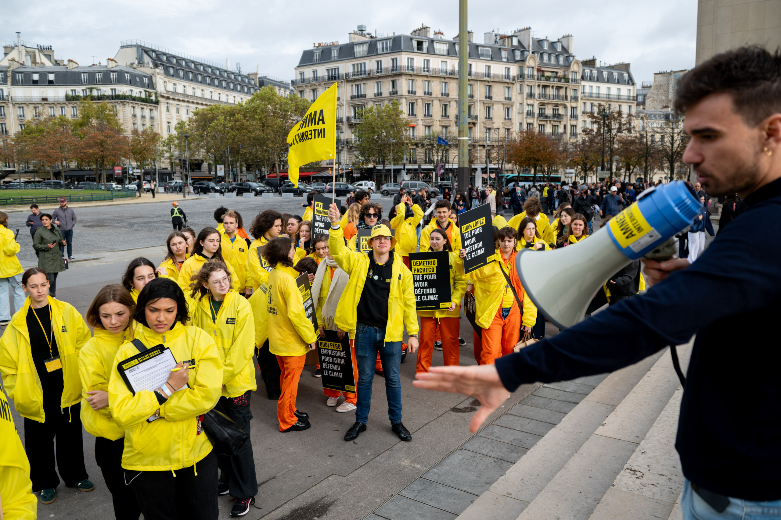 Pendant l’action en soutien aux défenseurs de l’environnement, Paris © Benjamin Girette