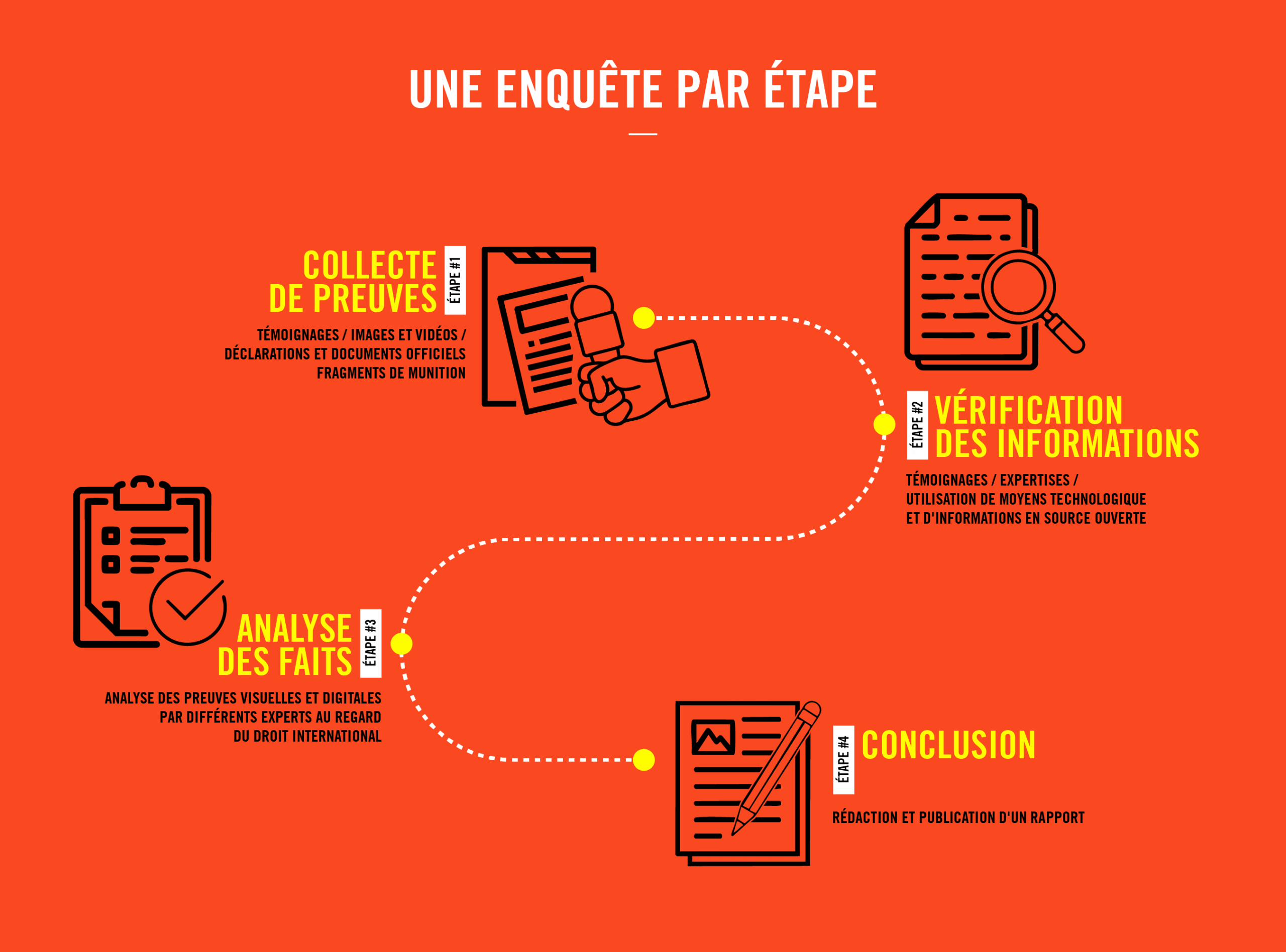 Au-delà de nos équipes de chercheur·ses directement impliqués sur le terrain, d’autres expert·es ont été appelés à se mobiliser à distance. Les équipes de notre Laboratoire de preuve contribuent à analyser les preuves digitales en ayant notamment recours à différents moyens technologiques comme la télédétection et corroborent ces données avec des témoignages et des documents officiels, en vue de prouver des violations du droit international.