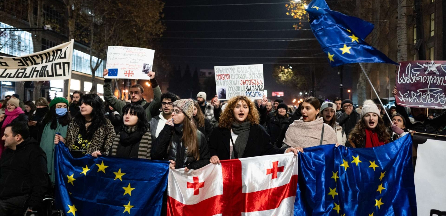 Un mois plus tard, le parti annonce la suspension des négociations d’adhésion du pays à l’Union européenne. Pour une grande majorité de la population de cette ancienne république soviétique du Caucase, l’annonce ne passe pas. Depuis des décennies, l’ombre du voisin russe plane sur le pays comme une épée de Damoclès.