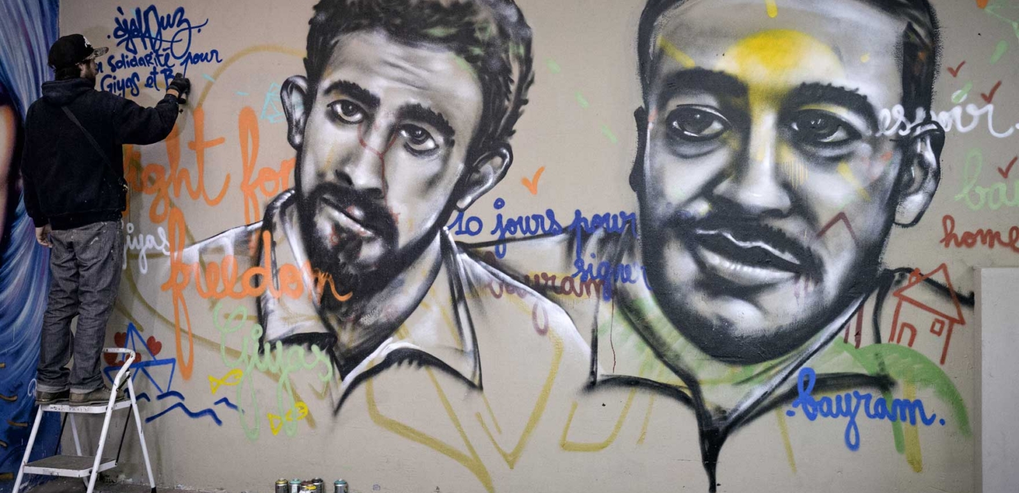 En faisant un graffiti représentant Bayram et Giyas, les artistes Djalouz, Mr2700 et Korail ont rendu hommage à la liberté d’expression tout en créant une action de solidarité originale pour les soutenir et interpeller sur leur cas. Des cartes postales du graffiti de Djalouz ont d’ailleurs été distribuées à des milliers de personnes. Adressées directement à Bayram et Giyas en prison, chacun a pu y inscrire des messages personnalisés de soutien. Comme beaucoup en témoignent, ces messages sont un soutien moral indispensable pour faire face à ces situations d’injustice. Ils peuvent aussi améliorer les cas des prisonniers puisqu’ils montrent qu’une attention internationale leur est portée.
