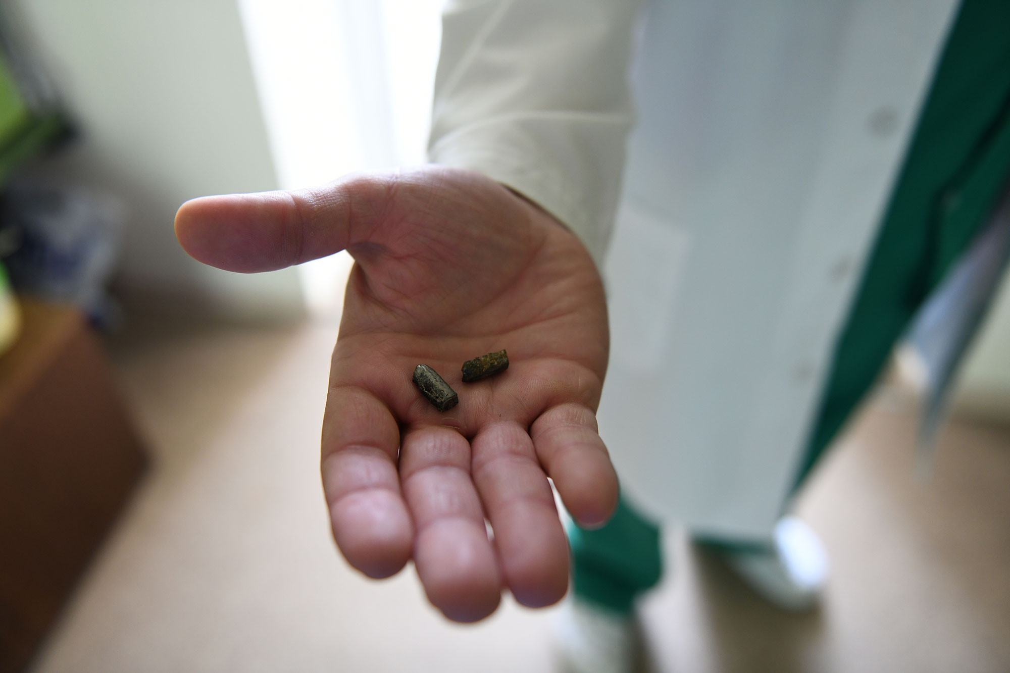 Des fragments de métal retiré des corps de patients dans un hôpital de Kharkiv © Amnesty International