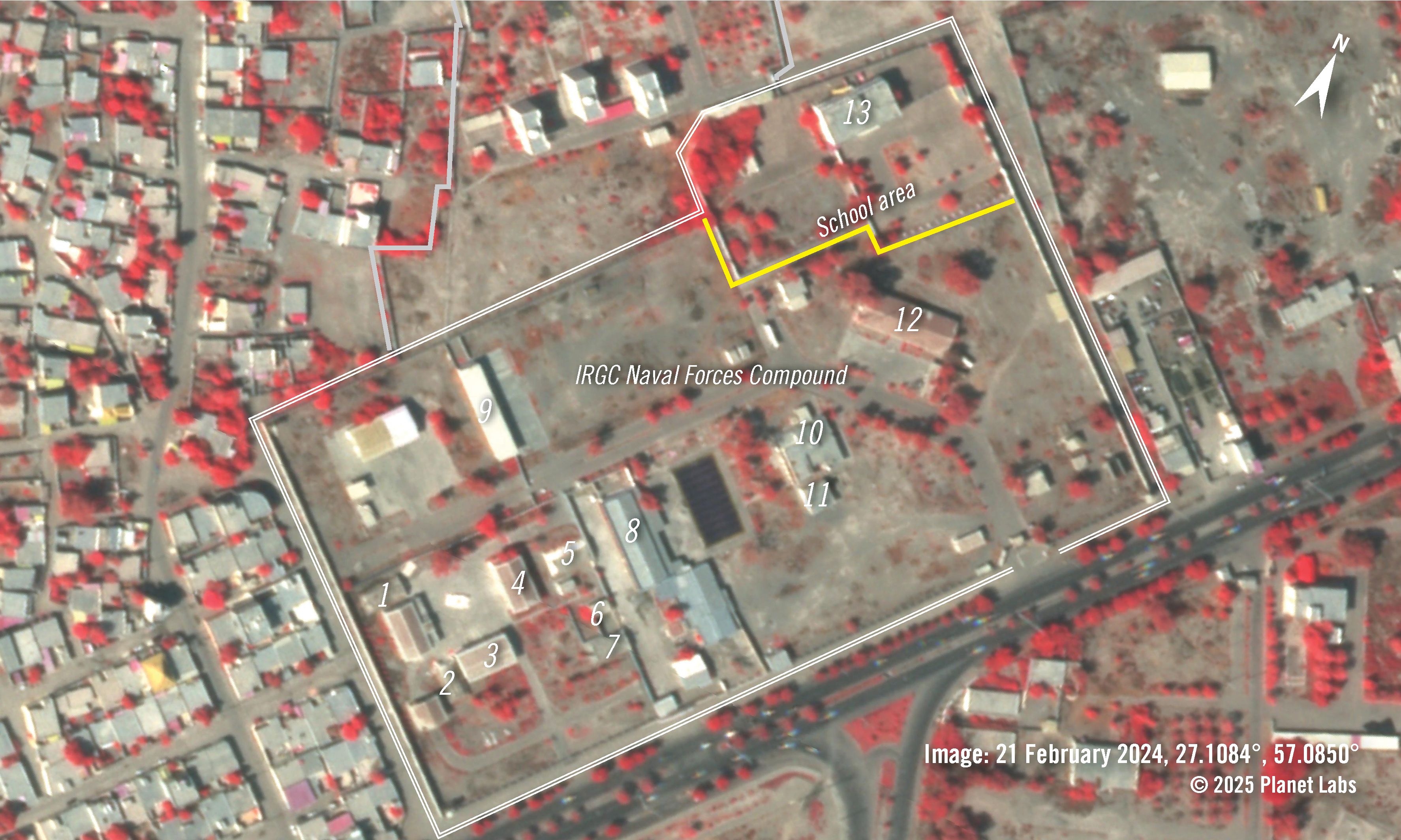 En effet, l’école est située à proximité d’un complexe militaire du Corps des gardiens de la révolution islamique (CGRI), cible des bombardements américains. En 2013, les murs de l’école faisaient encore partie de ce complexe militaire et servaient de quartier général au CGRI. Mais depuis 2016, les images satellites indiquent que les locaux de l’école ont été physiquement séparés du complexe du CGRI, par la construction de murs d’enceinte.