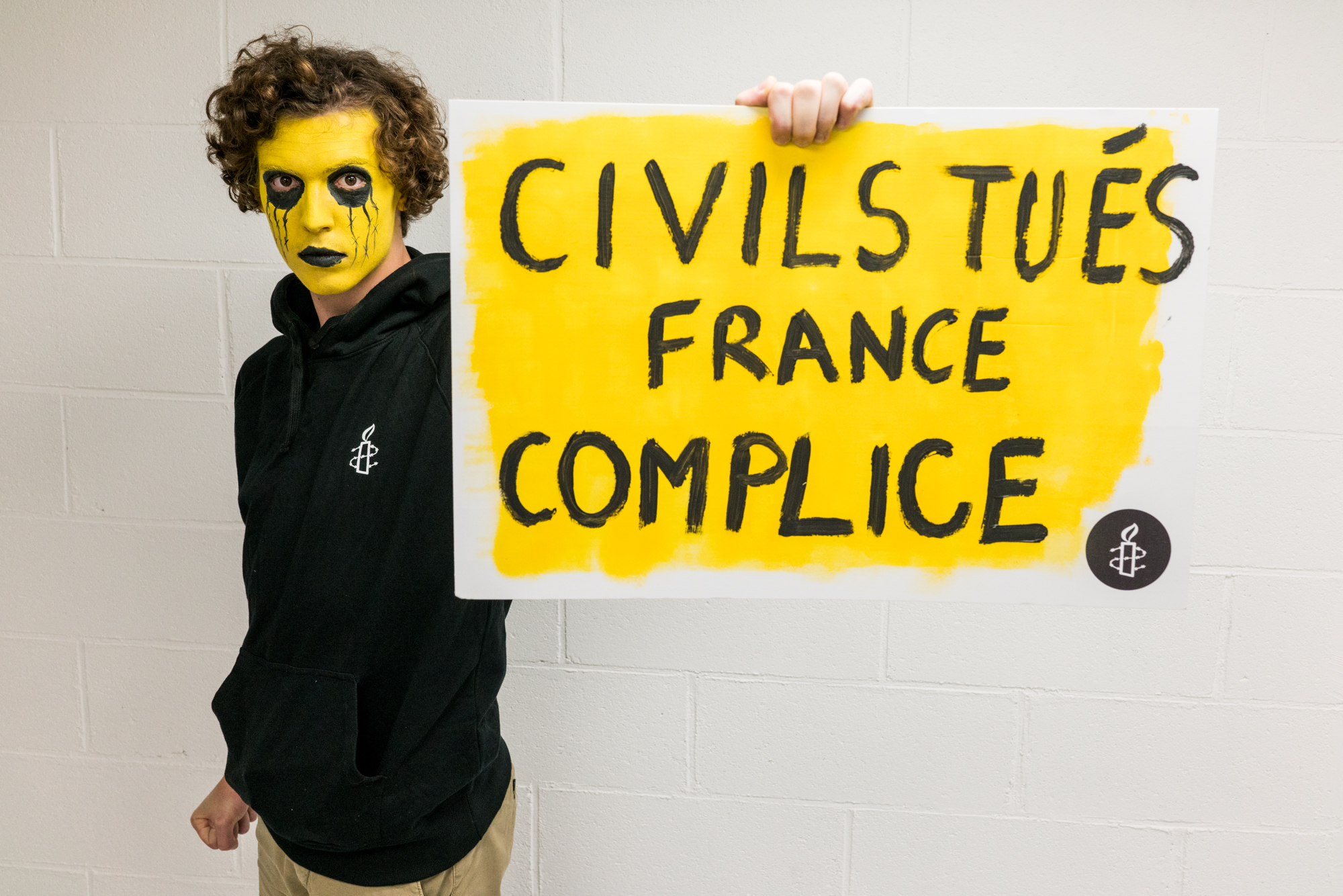 En préparation pour dénoncer les ventes illégales d’armes de la France © Benjamin Girette