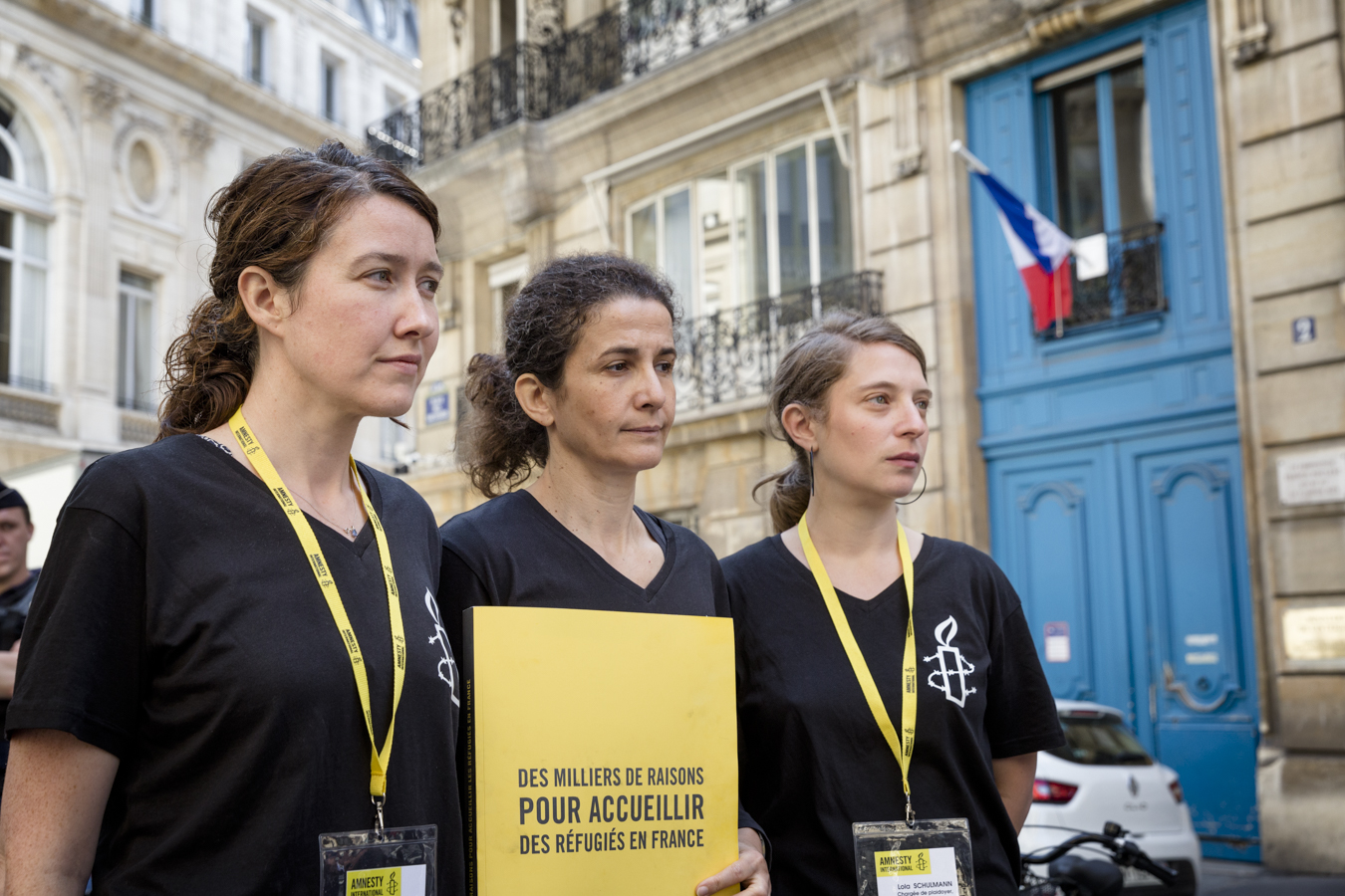 Une heure d’attente pour que notre délégation soit enfin reçue à l’Elysée © Pierre Yves Brunaud / Amnesty International France