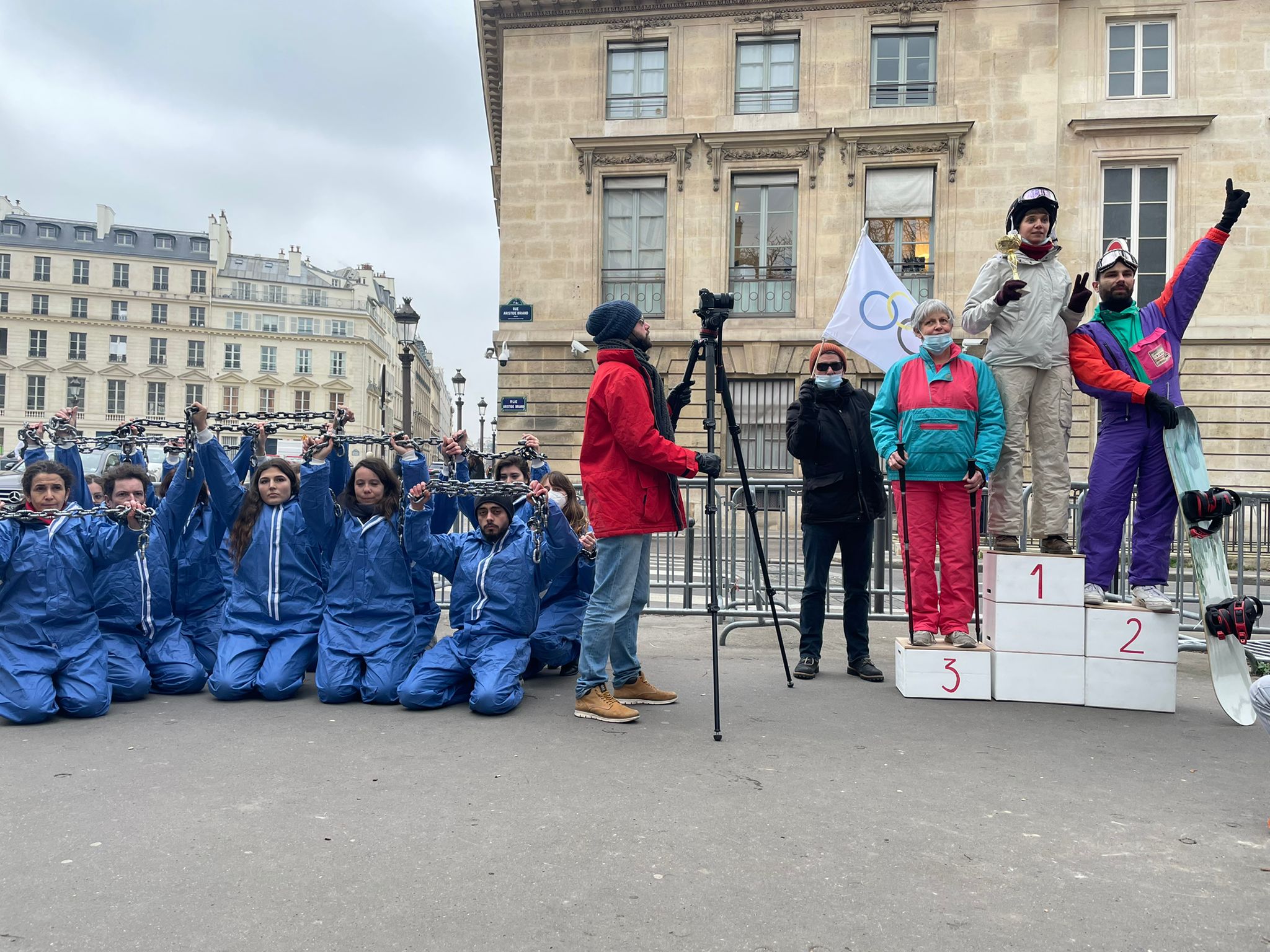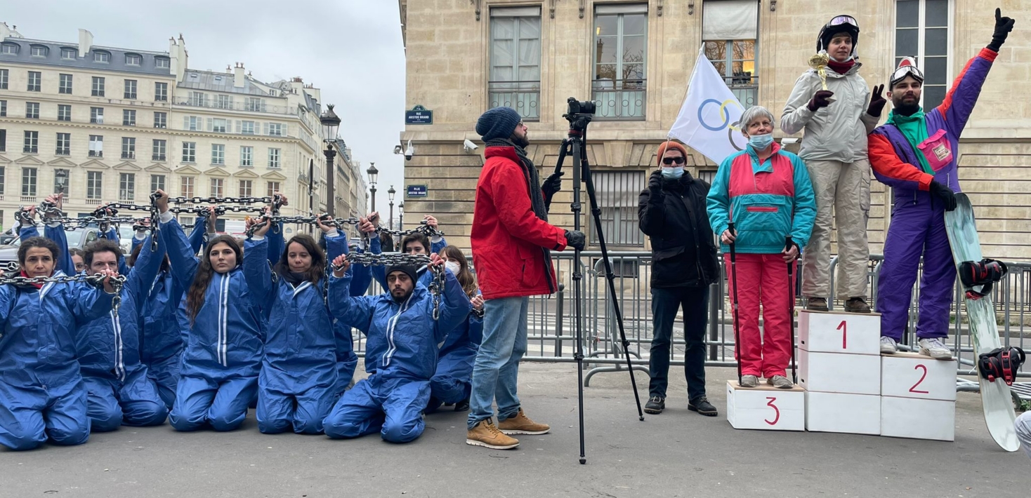 Nos militants sont venus nombreux pour dénoncer les crimes contre l’humanité commis en Chine. D’un côté, les sportifs des JO sous le feu des projecteurs. De l’autre, les personnes détenues au Xinjiang qui restent dans l’ombre.