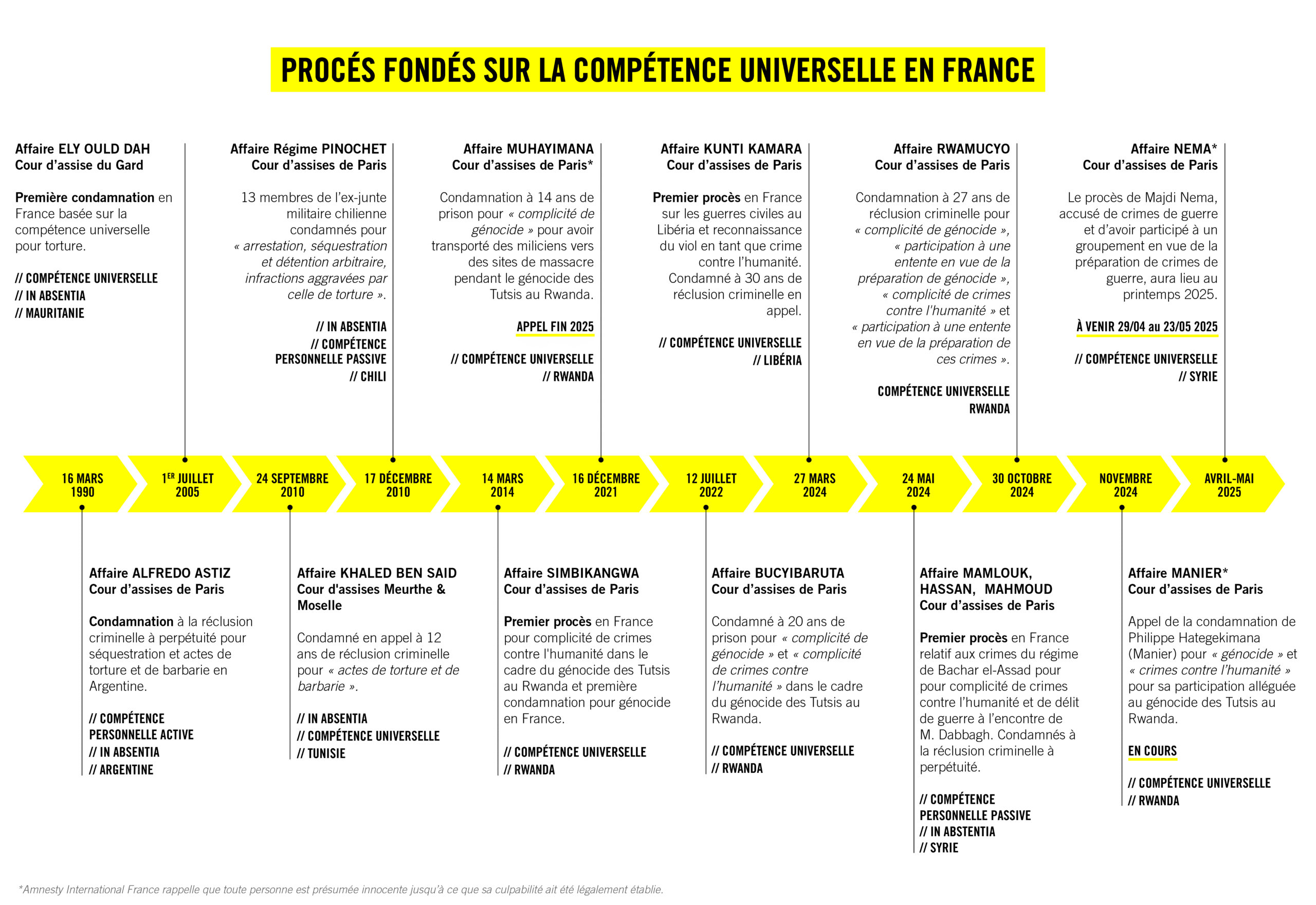 Depuis plusieurs mois, nous répertorions les dossiers – en cours mais aussi clôturés ou définitivement jugés – fondés sur la compétence universelle des juridictions françaises.