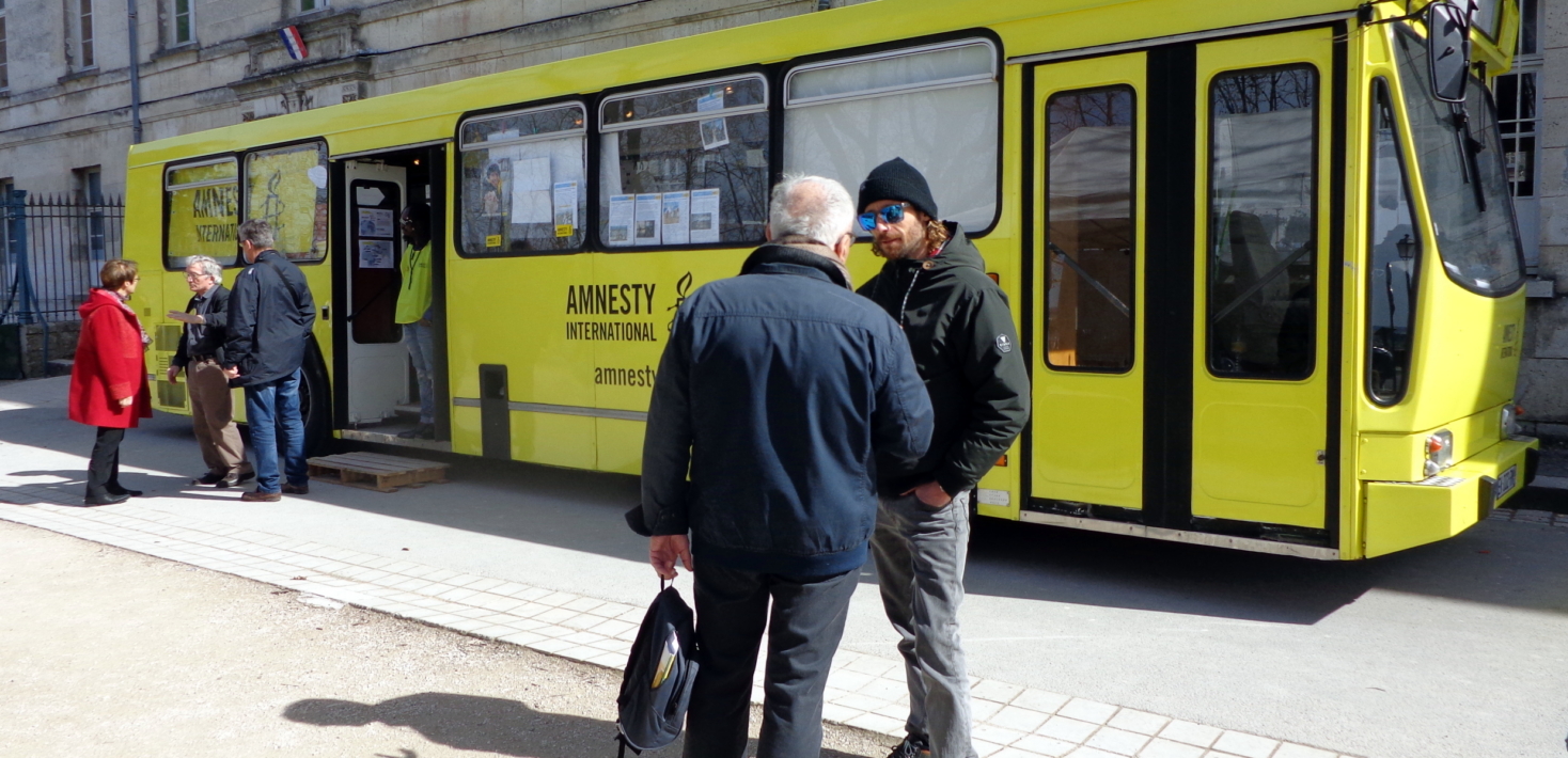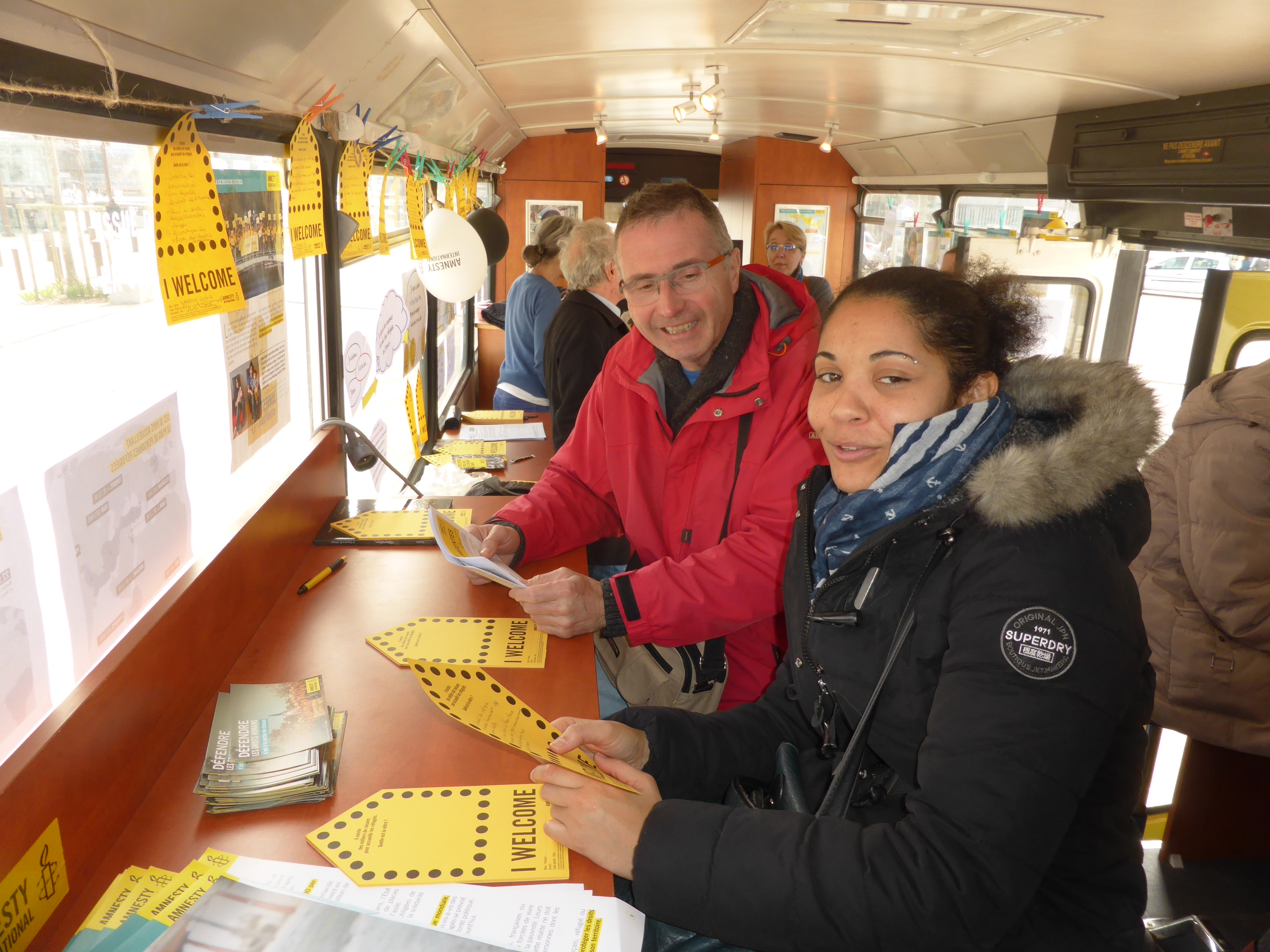 Du 2 au 15 mars, le bus I Welcome d’Amnesty International, qui fait la promotion de l’accueil des réfugiés en France, a fait étape dans huit villes de l’ancienne région Poitou-Charentes, révélant à chaque fois des moments précieux entre militants et citoyens.