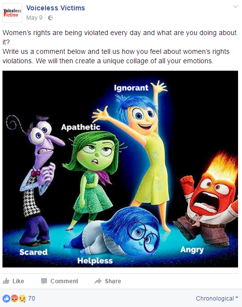 Les publications Facebook de Voiceless victims © D.R.