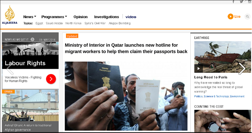 Cet article d’Al Jazeera, censé avoir été publié en mai 2016 accompagné d’une mention sur le travail mené par Voiceless Victims, n’a jamais existé (nous avons vérifié auprès d’Al Jazeera), et a été photoshopé.
