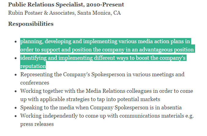 Le modèle type des responsabilités d’un site d’emploi copié-collé pour le profil d’Amélie Lefebvre © D.R.