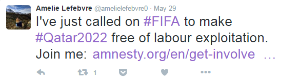 Après vérification auprès de certains collègues, nous nous sommes aperçus que VLV avait été en contact avec Amnesty depuis déjà des mois. La première prise de contact remontait à fin mars, lorsqu’« Amélie » avait envoyé un e-mail au siège d’Amnesty à Paris, et avait échangé avec le service presse du siège londonien, en amont de la publication de notre rapport sur l’exploitation des travailleurs sur le chantier du stade Khalifa, à Doha.