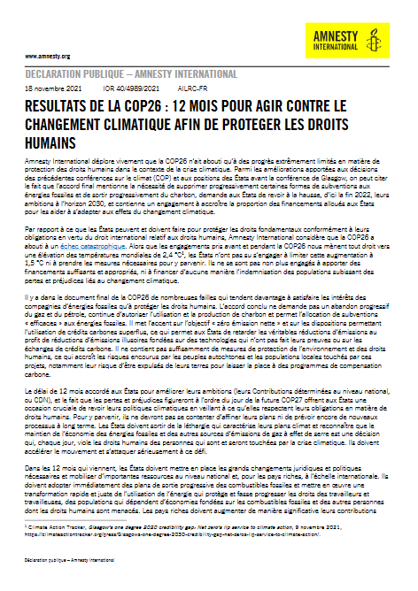 Les décisions prises par nos dirigeants à Glasgow ont de graves conséquences pour toute l'humanité. Il est clair qu’ils ont oublié au service de qui ils sont : les populations. Nous devons donc nous rassembler pour leur montrer ce qui peut être réalisé. Nous devons nous unir pour appeler nos gouvernements à prendre des mesures ambitieuses relatives au changement climatique, axées sur les personnes et les droits humains.