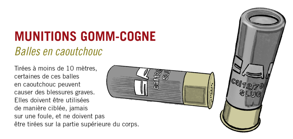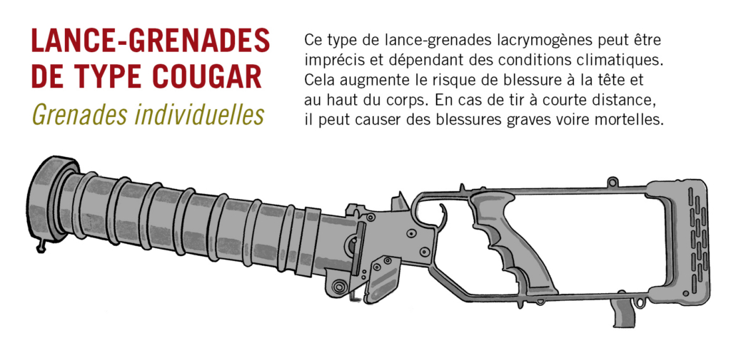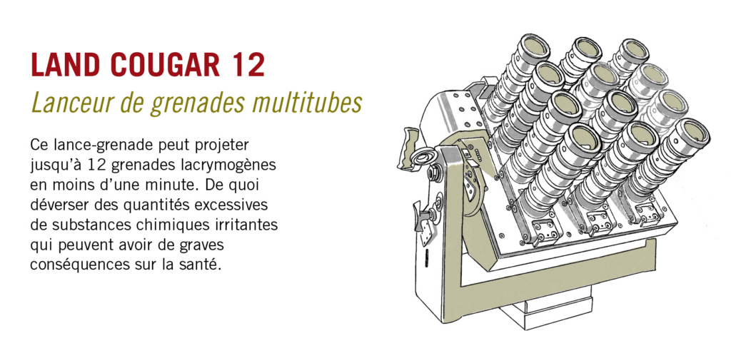 Certains d’entre eux, comme les lance-grenades et les véhicules blindés, sont exportés comme des « équipements militaires », d’autres, comme les grenades lacrymogènes et les balles en caoutchouc, comme des « équipements civils ».