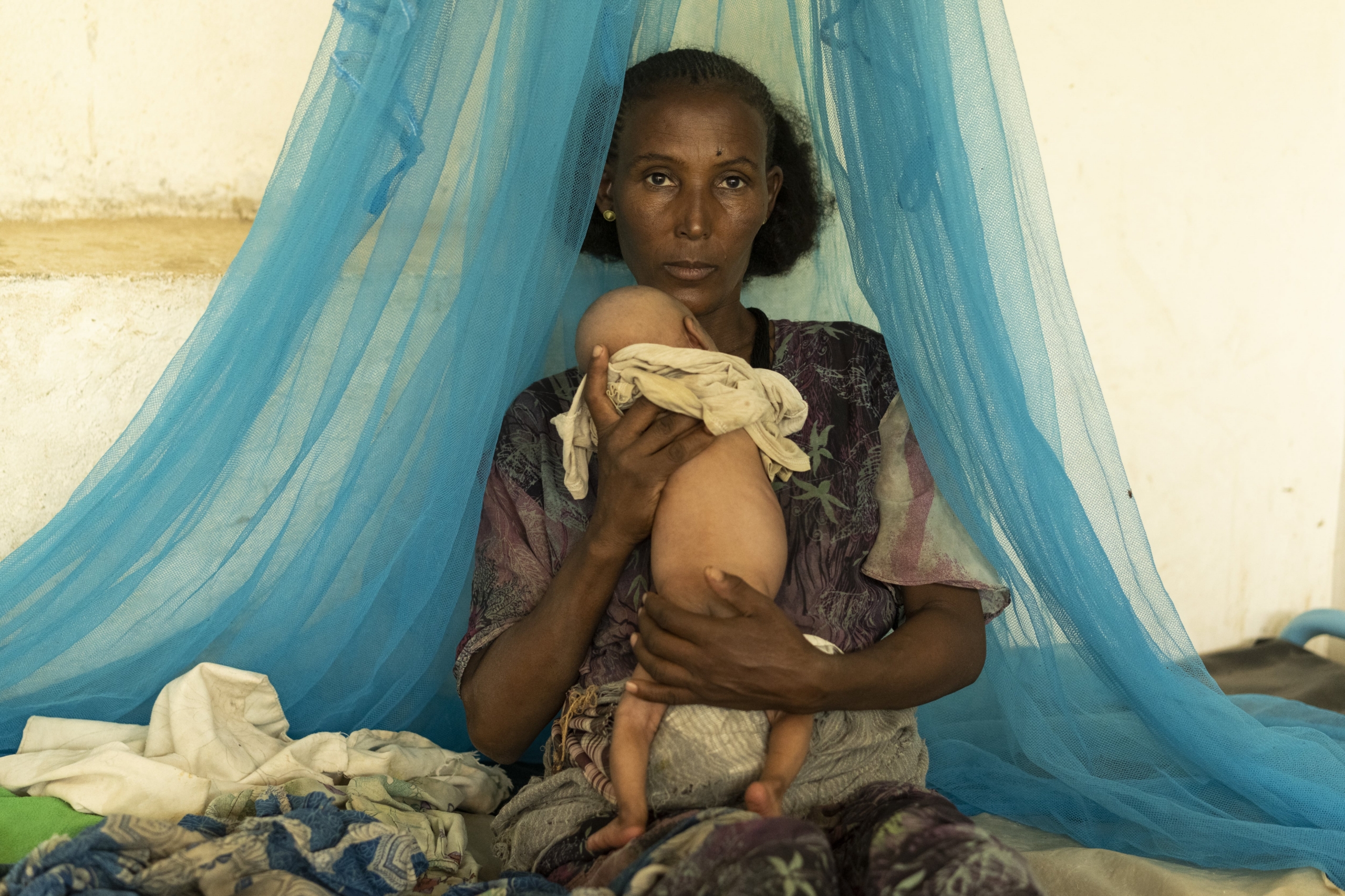 Tigré : au pays de la faim. Hunger in Tigray. Yechill. Centre de soin. Selam Kidane, bébé de 2,5 Kg à 2 mois. Cette mère a de la chance, son bébé, frappé par la famine, a pu reprendre du poids. Ses chances de survie sont réelles. © Olivier Jobard