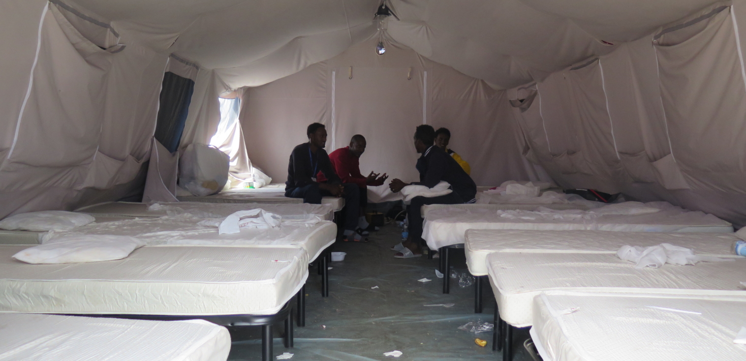 Nous sommes arrivés en Italie le 27 juillet, je ne sais pas où. Beaucoup d’entre nous se sentaient mal. Une fois descendus du bateau, on nous a amenés en bus dans un centre près de la mer. On m’a demandé mon nom, ma nationalité, mon état civil et mon âge, rien d’autre. On m’a pris en photo et donné un numéro.