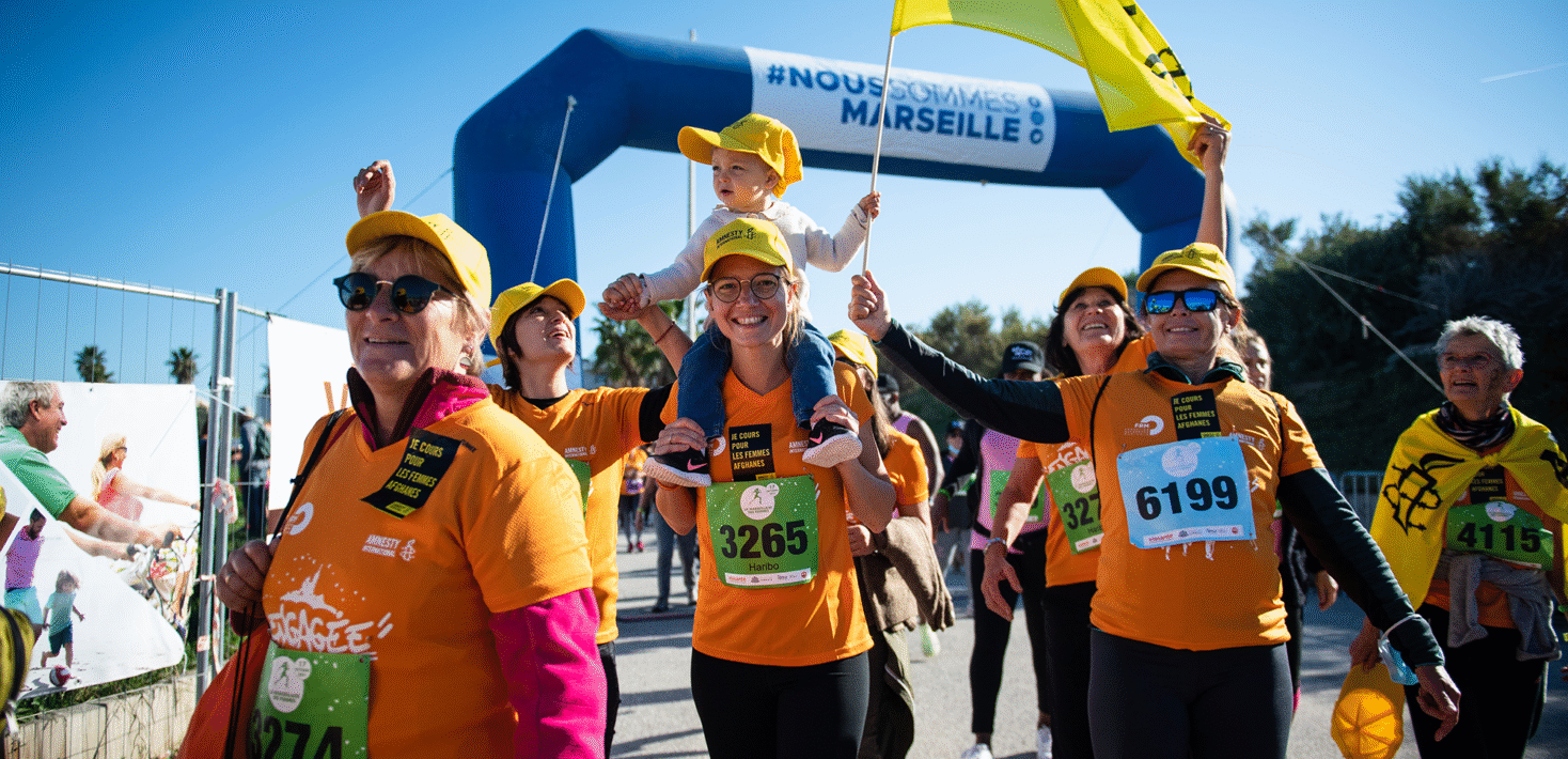 Cette année, quarante-et-une de nos militantes ont couru et marché pour montrer leur soutien aux femmes afghanes. En Afghanistan, depuis le retour au pouvoir des Talibans, les droits des femmes sont gravement menacés. Par crainte de représailles violentes, de nombreuses femmes portent aujourd’hui la burka et s’abstiennent de sortir de chez elles sans un tuteur masculin.